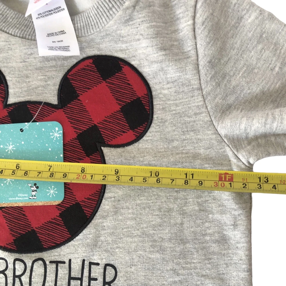 Disney boy's / youth BIG BROTHER soft, gray long sleeve sweatshirt ~ size 4 * NEW w / tag, fleece lined. red & black plaid Mickey. Fabric is not too light, not too heavy. Machine wash