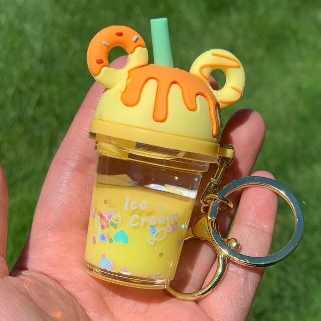 Disney Mickey Mouse Donut Ears Boba Tea Cup Keychain Kawaii Yellow Accessory