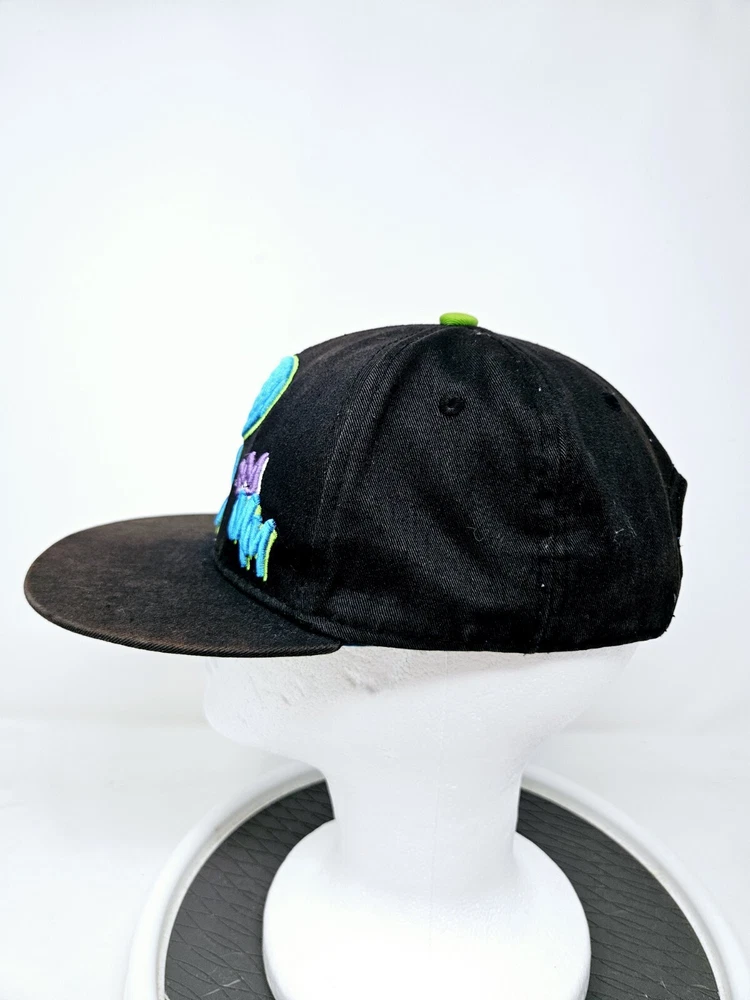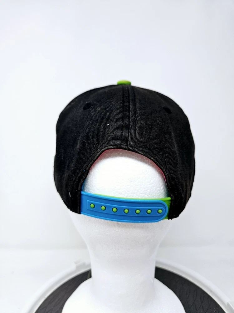 Disney Mickey Mouse Embroidered Snapback Hat Cap Black Green Flat Bill Used