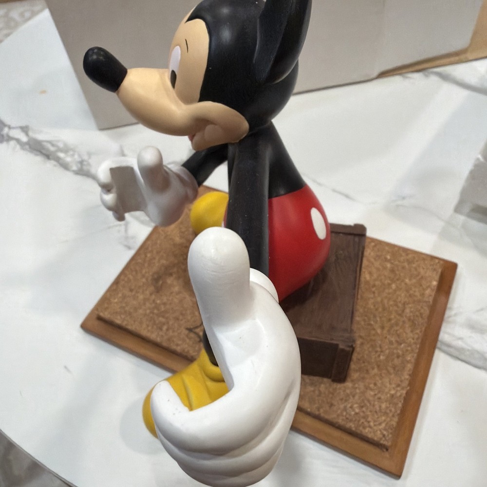 This vintage Disney Mickey Mouse figurine statue from the 1990's is a charming collectible piece that would be perfect for any Disney enthusiast or collector. Standing at 6 inches tall, this officially licensed Disney product captures the magic and nostalgia of the beloved Mickey Mouse character. Whether displayed in a theme park resort or in a personal collection, this figurine is sure to bring joy and whimsy to its surroundings.