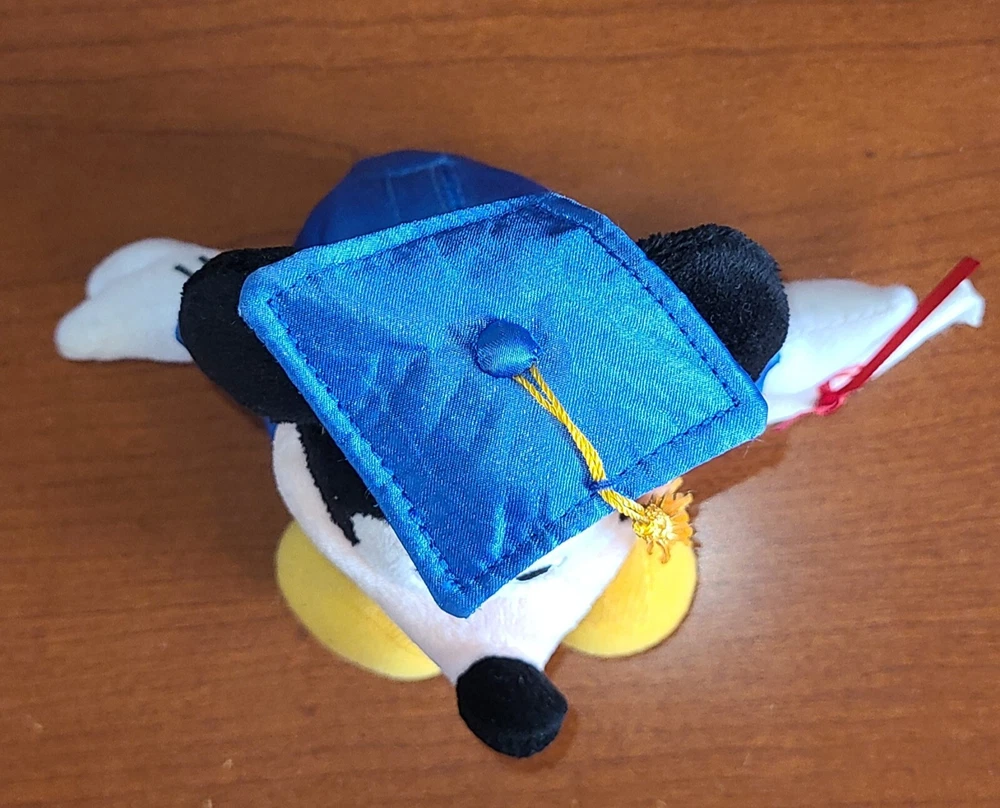 Celebrate Mickey Mouse's graduation with this adorable plush cap and gown set! The 8" cap features the iconic Disney character in his classic pose, while the gown is made of soft and cozy material. Perfect for collectors and fans of all ages, this set is a must-have for any Disneyana collection. The brand is Disney and the character/story/theme is Mickey Mouse.