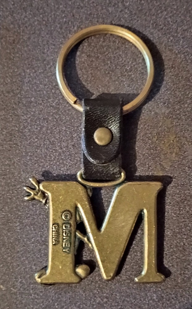 Disney Mickey Mouse Letter M Brass Keychain Key-Ring Vintage Collectible A-2