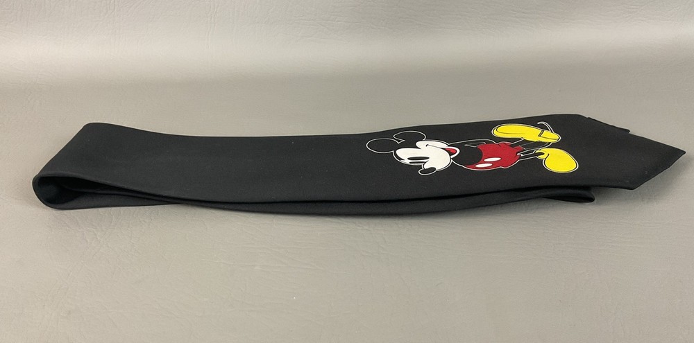 Brand: Disney Department: Men Size: One Size Attachment Type: tie Color: Black Theme: Disney Personalize: No Character: Mickey Mouse Style: Pointed Type: Tie Item Width: Classic Item Length: Classic (57"-60") Handmade: No Vintage: Yes Material: Polyester Country/Region of Manufacture: China