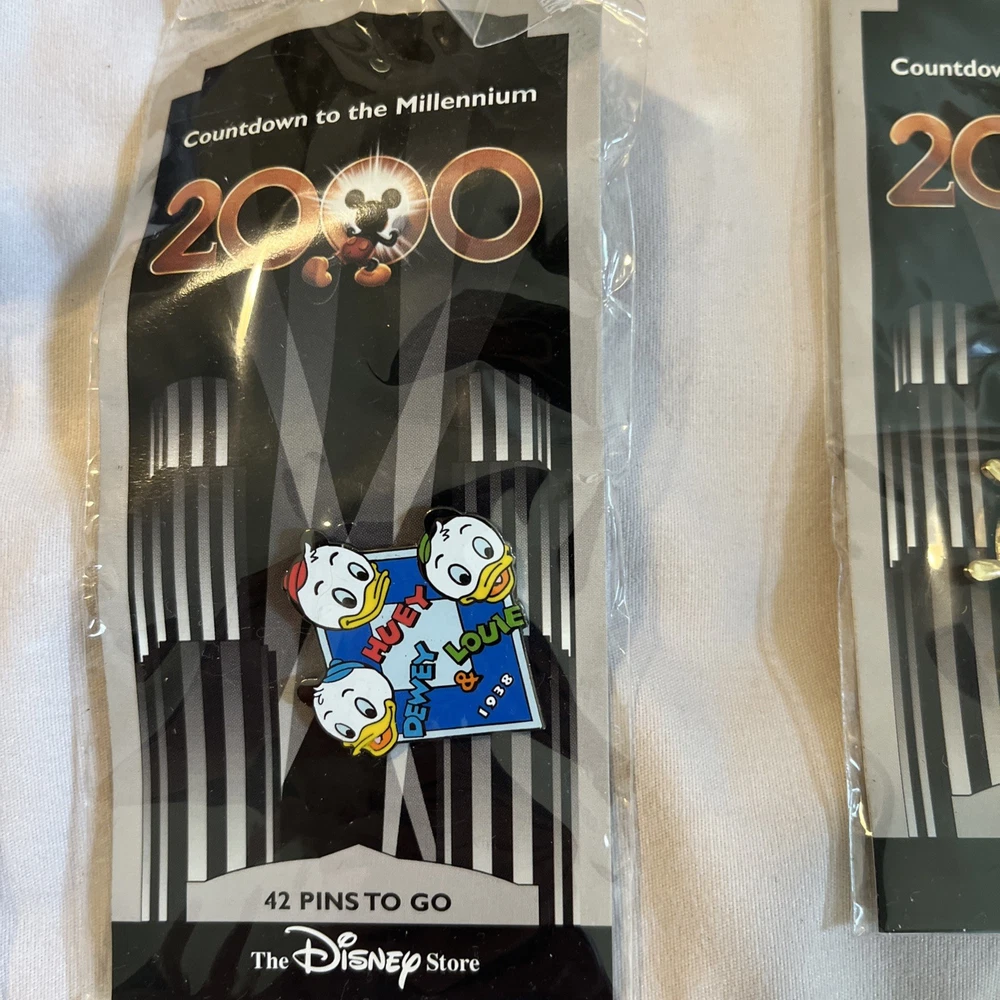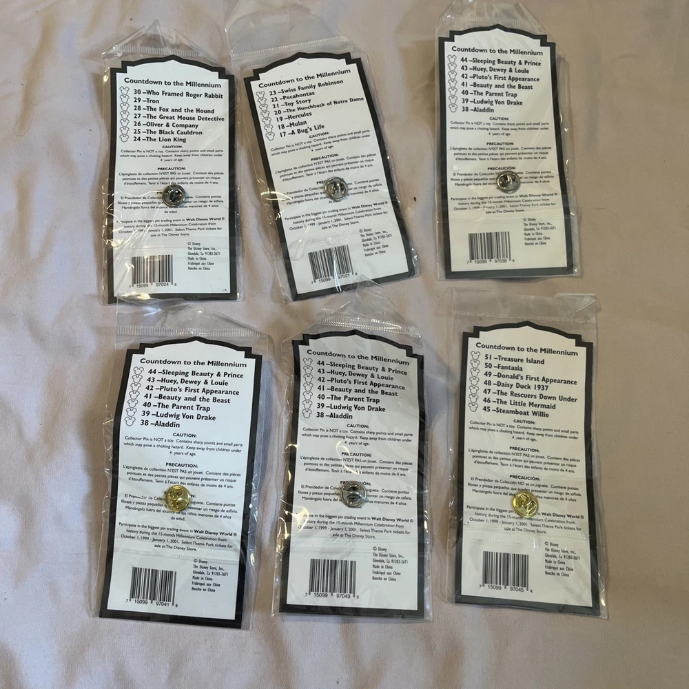 Countdown to the millennium 2000 set of six new Disney pins in package unopened number 20 number 37 number 44 number 23 number 40 and number 42
