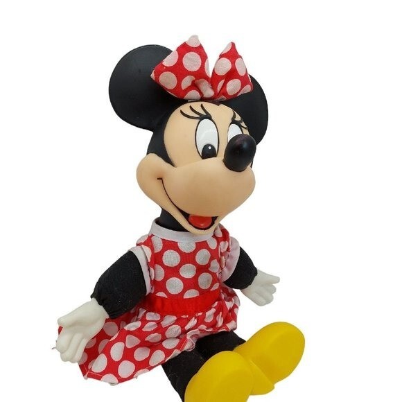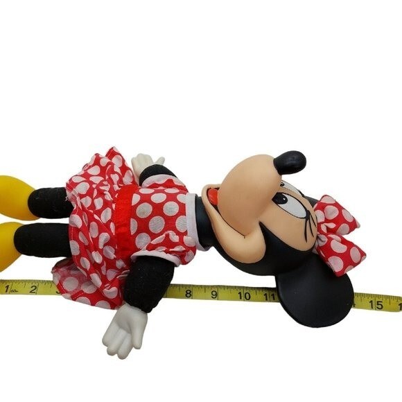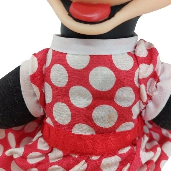 Has scuffs on nose and mark on dress. Please see attached photos Disney Mouseketoys Minnie Mouse rubber faced vintage 15" doll