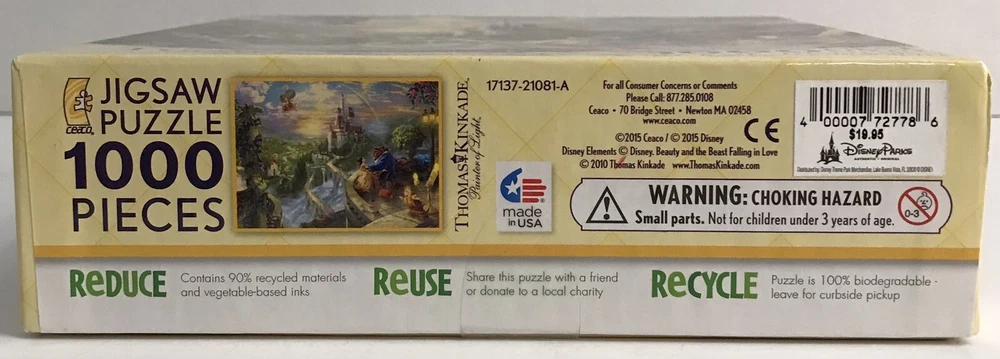 gtin13:400007727786Color:Multi-ColorUPC:400007727786Title:Beauty & the Beast Falling in LoveTheme:DisneyCharacter Family:DisneyArtist:Thomas KinkadeAge Level:12-16 Years, 17 Years & UpYear:2013Size:27" x 20"Number of Pieces:1000 PiecesBrand:CeacoCountry/Region of Manufacture:United States