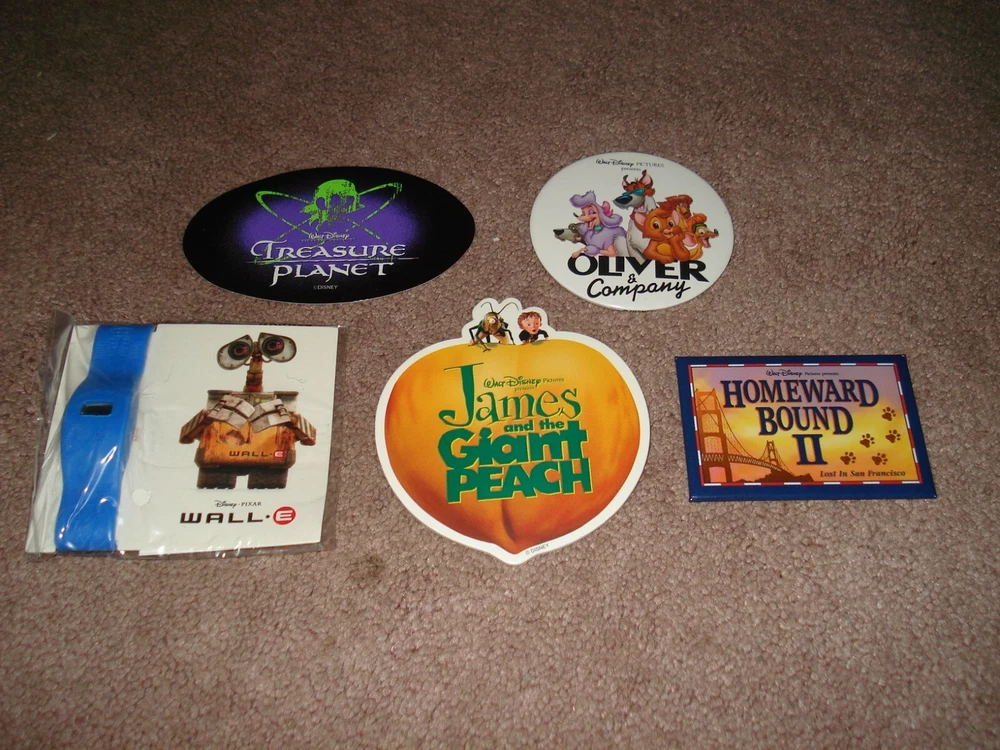Up for purchase is a COMPLETE SET of 10 Disney Cast Member-inspired LAPEL PINS, like the ones presented to each cast member on their milestone anniversaries at the Walt Disney Company. Separate Pin Items included are 1. Mickey Mouse, 2. Pluto, 3. Donald Duck, 4. Tinkerbell, 5. Simba (Hakuna Matata), 6. Buzz Lightyear, 7. Mulan, 8. Remy, 9. Groot, and 10. Ray. Plus Bonus Disney Movie Promotional items! ... "WALL-E" Watch" (for display only), "TREASURE PLANET" Decal, assorted "UP" Balloons, "OLIVER & COMPANY" Pin, "JAMES AND THE GIANT PEACH" Pin, and a "HOMEWARD BOUND II" Pin. All items are BRAND NEW. Lapel Pins are in separate protective enclosures (See attached photos). Priority Shipping, Insurance, and Tracking is $16.50 worldwide. ALL SALES FINAL. Enjoy! +++ PLEASE NOTE: Per/eBay guidelines, winning bidder's PayPal payment must be received PROMPTLY AFTER END OF AUCTION via Buy-It-Now. Thank you for your co-operation! +++