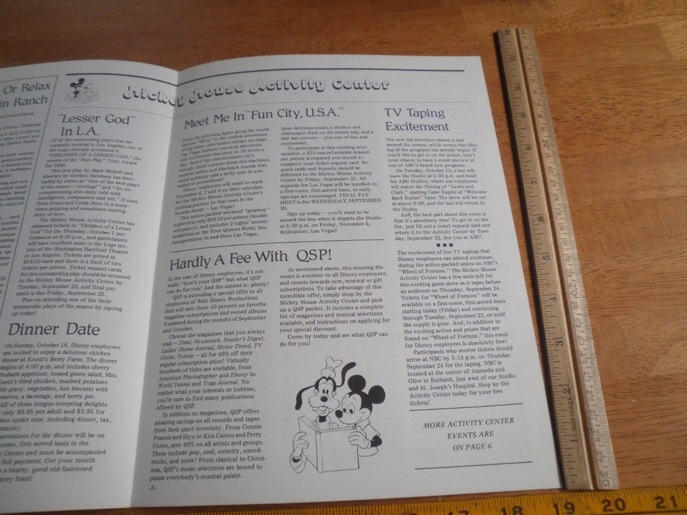 This is a great Disney Studio Newsreel magazine for the employees of Walt Disney Productions and WED/MAPO. It has all of the dirt on the filmings of the time along with activities for employees of the Disney parks and world. Great Piece Act fast on this one! Most items ship within 24 hours of payment. I understand that quality and accurate descriptions make for a quality transaction. You will get exactly what has been described. Check out my store and buy multiple items to save on shipping. Combined shipping is the best way to go. Enjoy.