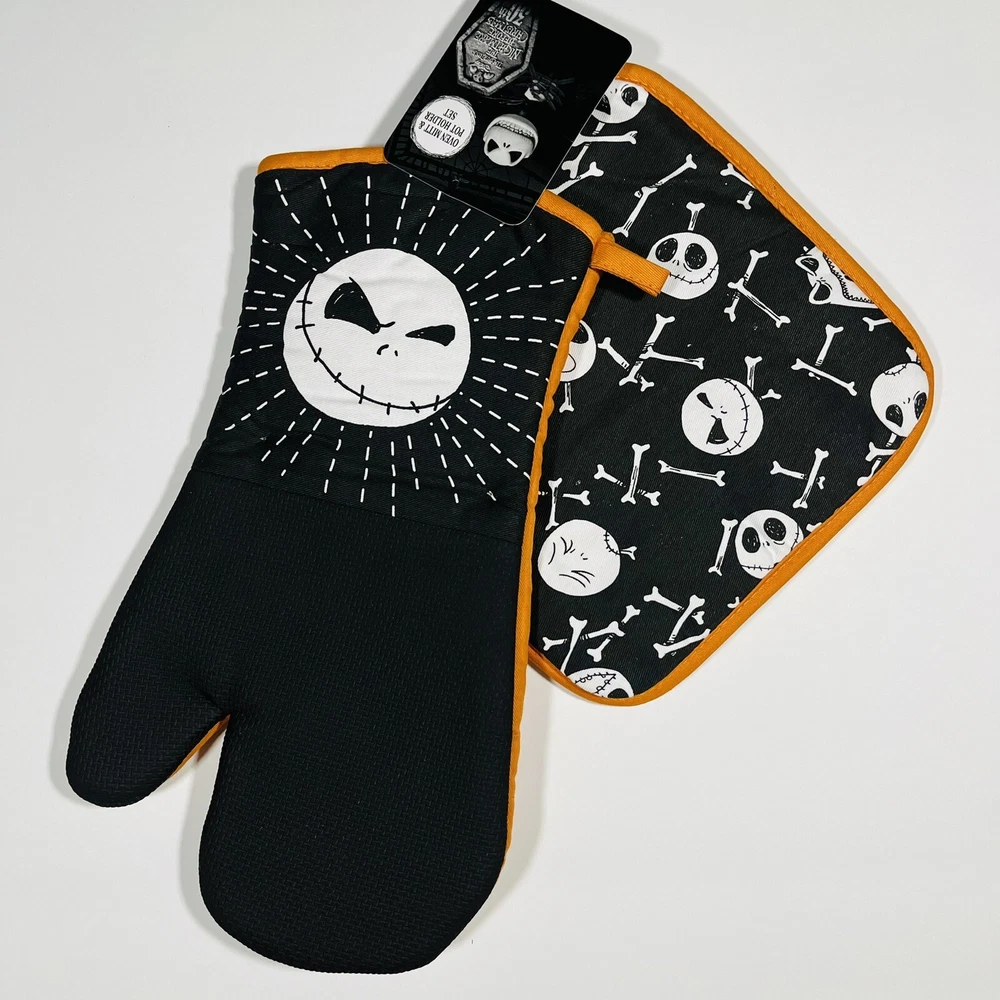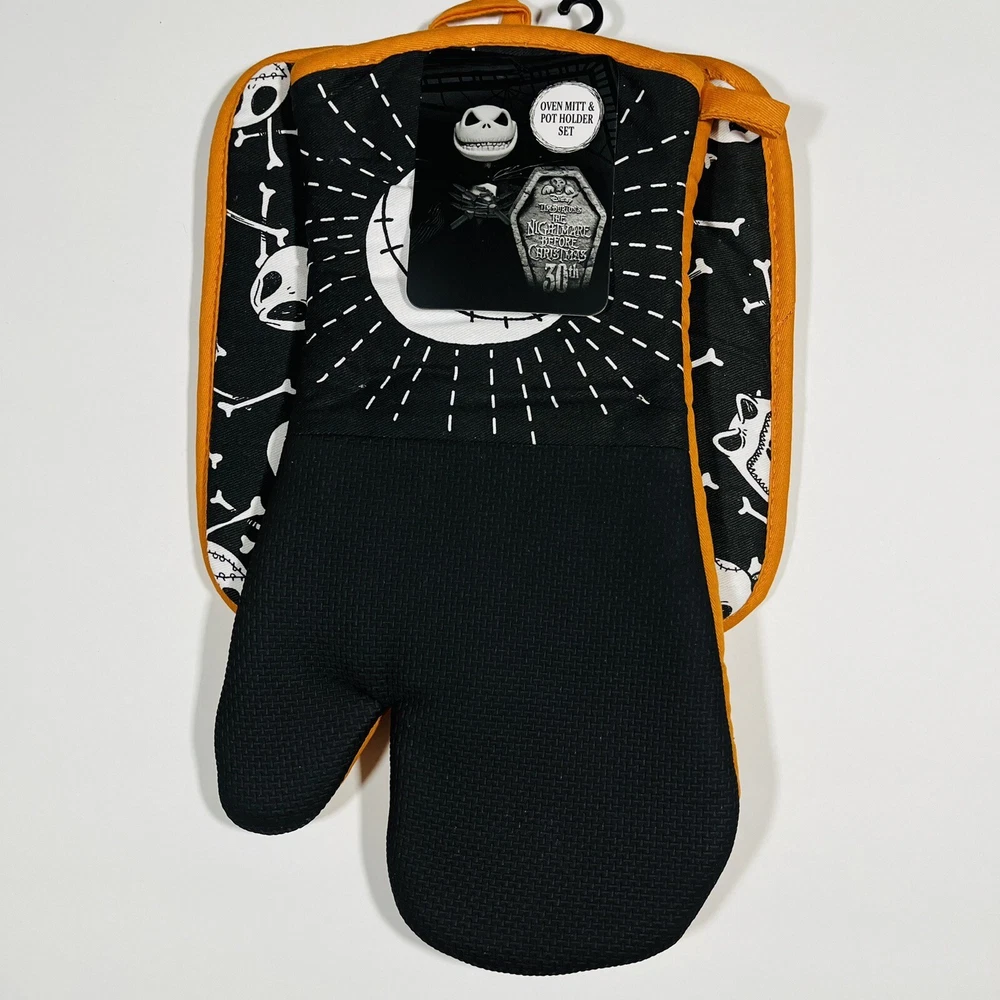 Model:Disney The Nightmare BeforeNumber of Items in Set:2Type:Oven Mitt Pot HolderSet Includes:Oven Mitt, Pot HolderColor:MulticolorMaterial:100% Cotton, 100% PolyesterPattern:HalloweenSize:MultipleTheme:HolidayDepartment:HomeOccasion:HalloweenBrand:DisneyCharacter Family:The Nightmare Before ChristmasCharacter:Jack SkellingtonCustom Bundle:No