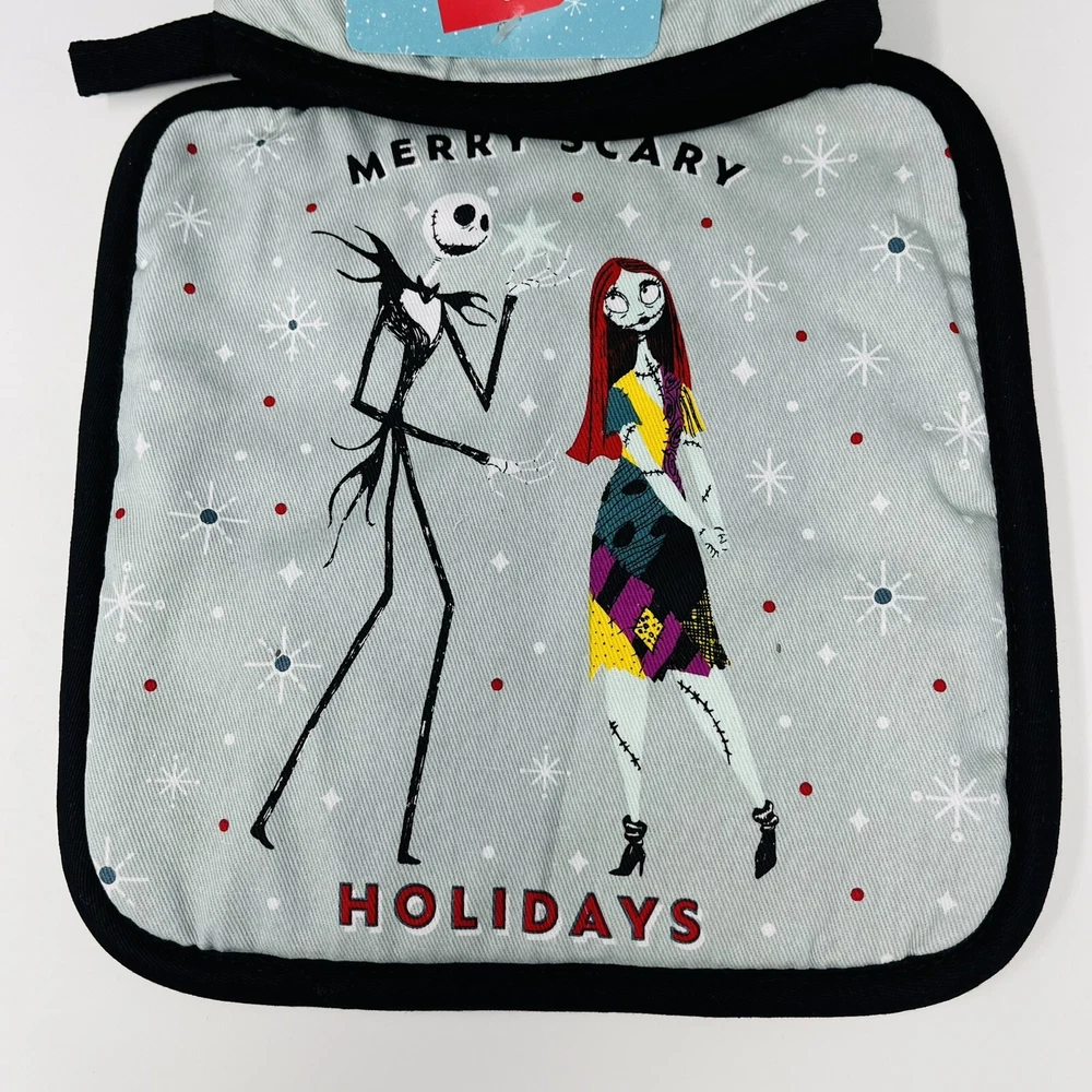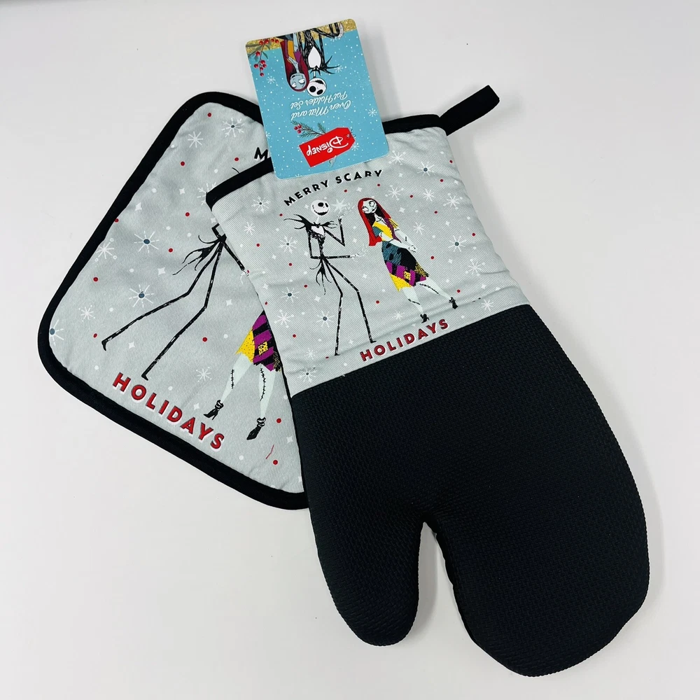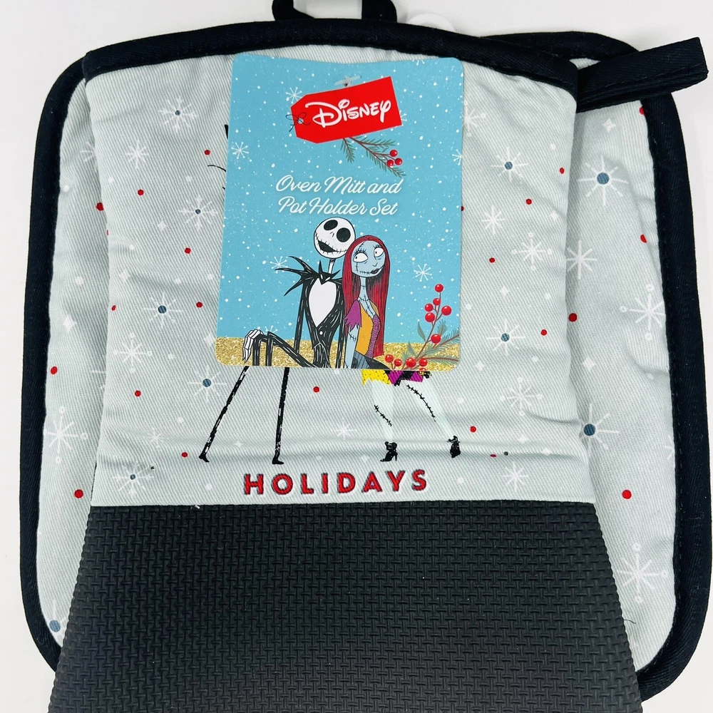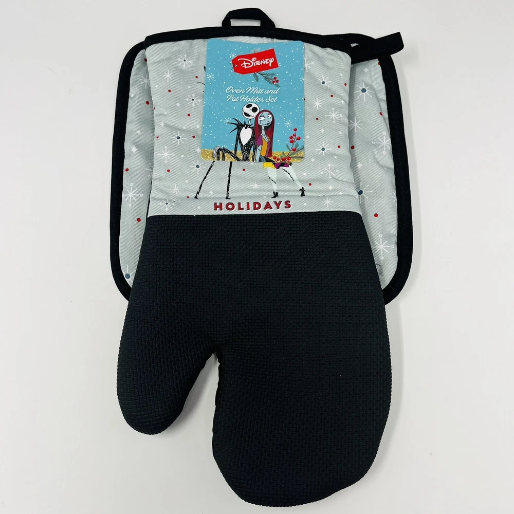 Brand:DisneyCharacter Family:The Nightmare Before ChristmasSet Includes:Oven Mitt, Pot HolderDepartment:HomeOccasion:ChristmasCharacter:Jack SkellingtonTheme:HolidaySize:MultipleType:Oven Mitt Pot HolderMaterial:100% Cotton, 100% PolyesterColor:MulticolorModel:Disney The Nightmare BeforeNumber of Items in Set:2Custom Bundle:No