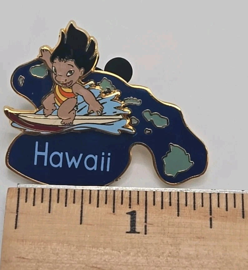 This Disney Pin is a must-have for fans of Lilo & Stitch! It features Lilo, the beloved character from the movie, surfing. This is part of the Disney state series pins featuring the state of Hawaii. This pin is a part of the Disney Trading Pin franchise and was released in 2002. It's the perfect addition to any Disneyana collection, especially for those who love collecting pins and patches. Don't miss out on the chance to own this adorable Disney Pin! Pin has a knick in the gold color outline at the bottom near the last I in Hawaii. See photos for details and sizing as they are part of my description. Message me with any questions you may have. Thank you,and please take a look at my other items . V-29