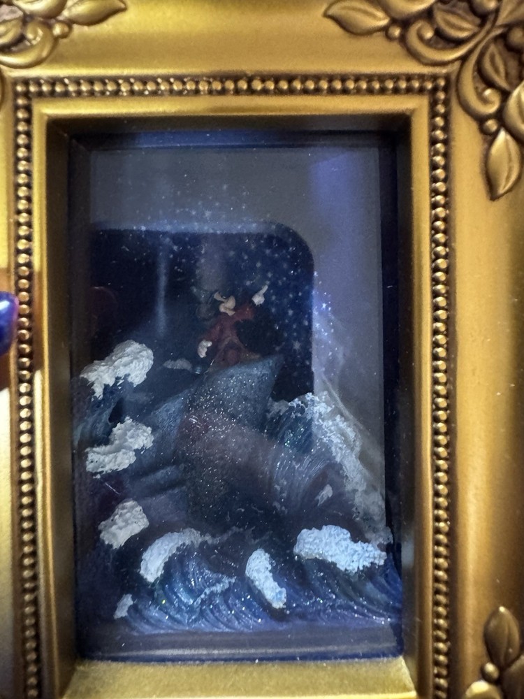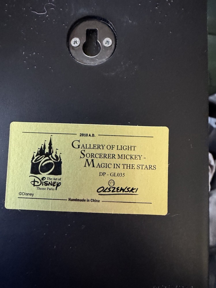 The Disney Olszewski Gallery of Light Sorcerer Mickey Magic in the Stars Shadow Box is a collectible item featuring the iconic character Mickey Mouse from the Disney franchise. This unique shadow box showcases intricate details and lighting effects that bring magic and whimsy to any space. Perfect for Disney fans looking to add a touch of enchantment to their collections, this item captures the essence of Mickey's charm and beloved story.