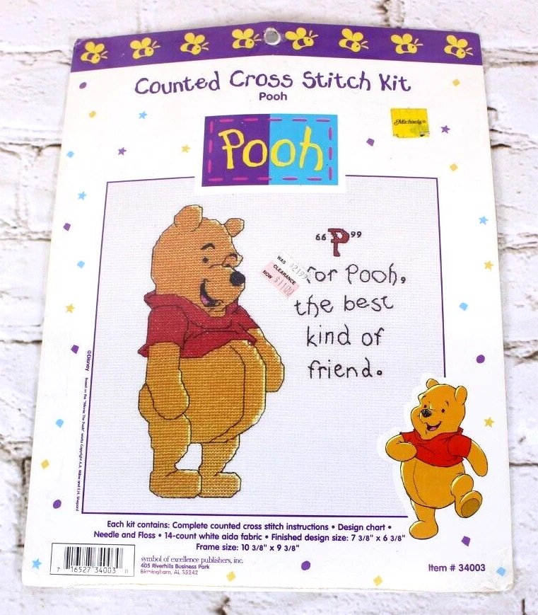 Model: Pooh gtin13: Does not apply Brand: Disney Format: Framed Picture UPC: Does not apply MPN: 34003 Theme: Cartoons & Characters Style: Frame Type: Cross Stitch Bundled Items: Fabric/Cloth, Needle, Stitching Guide, Thread/Floss