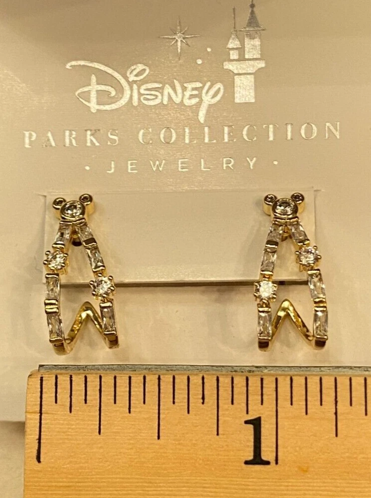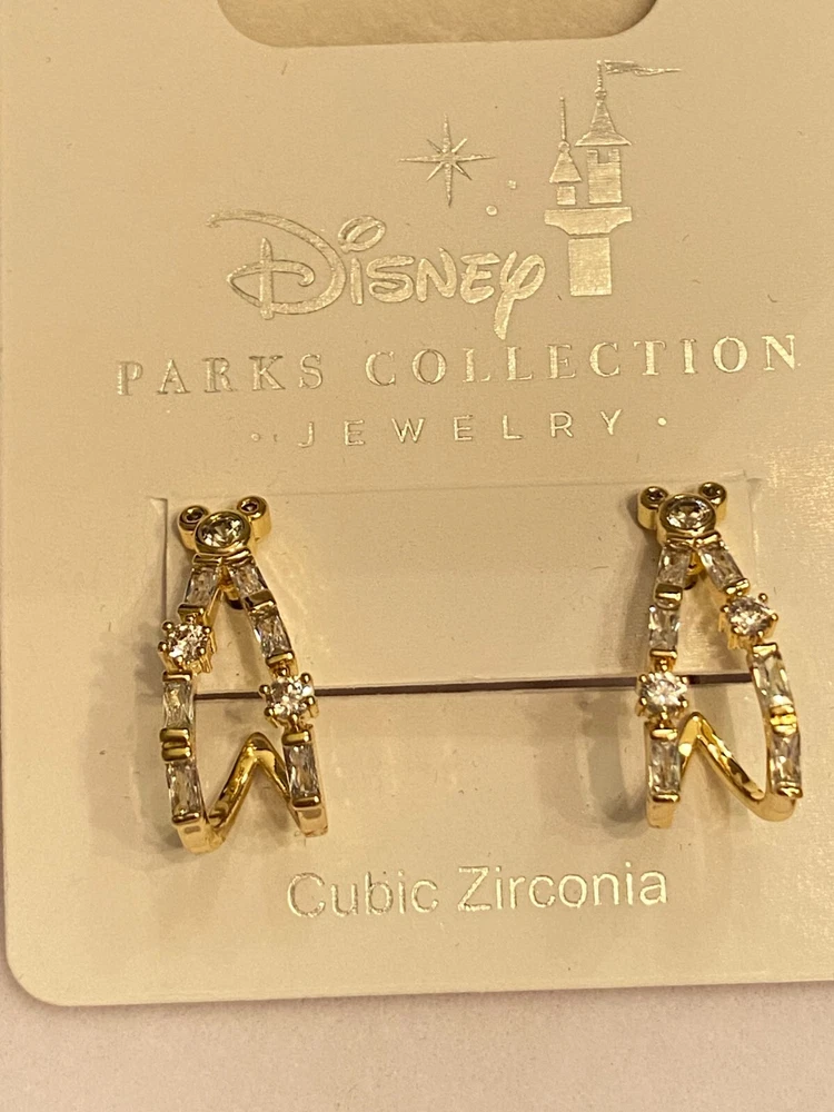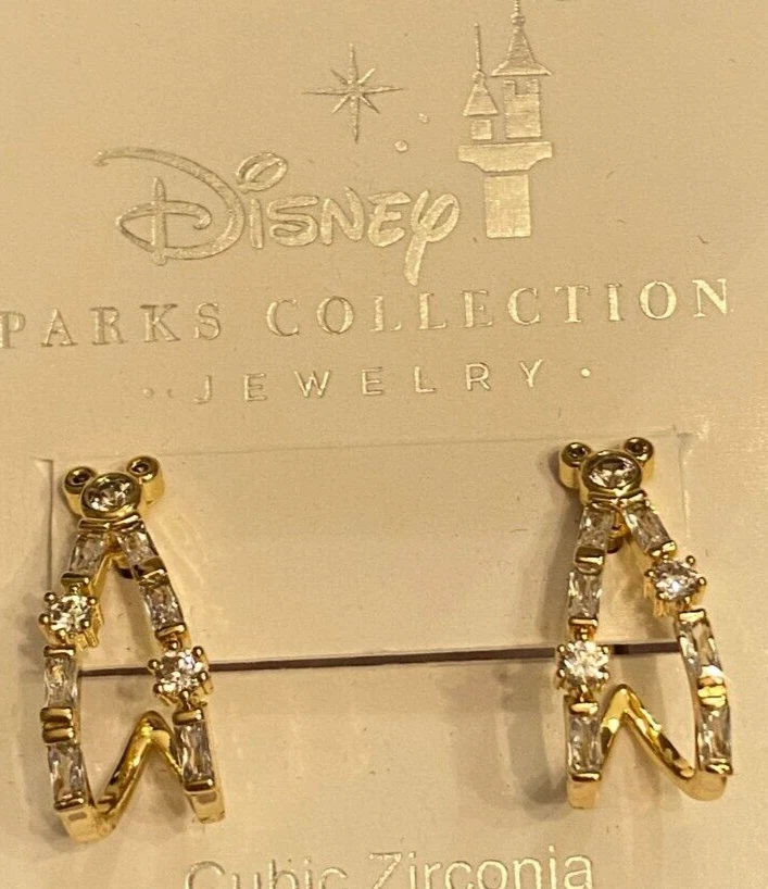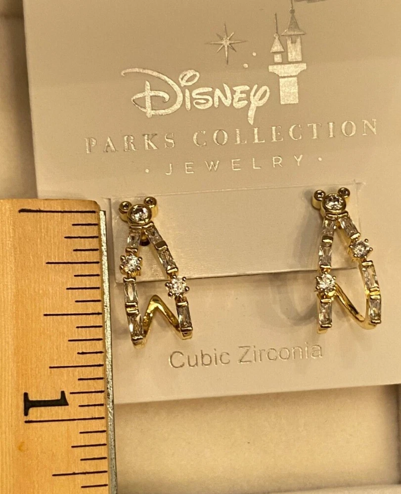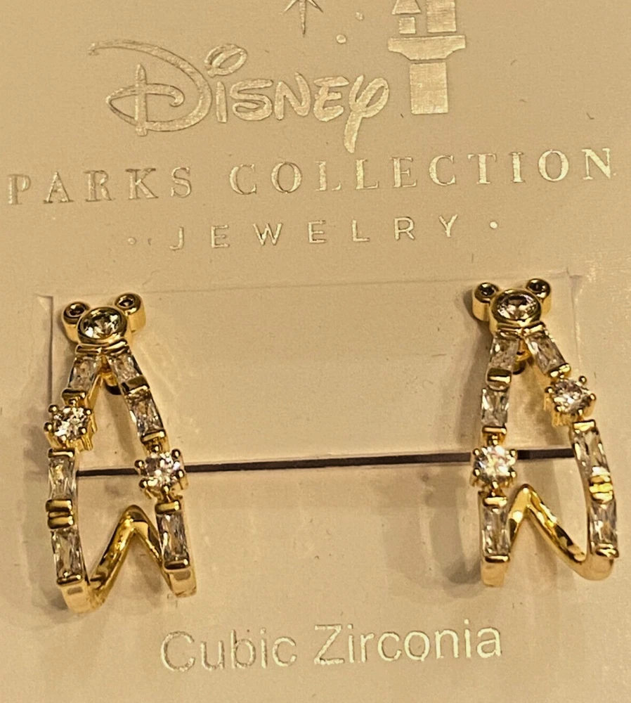 Brand new iconic Mickey Mouse head with cascading Cubic Zirconia flowing down in gold. These earrings are for pierced ears and are post style. Earrings come from the Disney Parks Collection Jewelry. The earrings are crafted with high-quality materials and are suitable for any occasion. Measurements are approximately 3/4 long and just under 1/2 in wide. Please note that measurements are approximate as I am not a jeweler but do have a millimeter gauge. The spots you see are only reflections of lighting above. Note that photos are as close to exact as possible but may vary in color due to the differences in computer/camera screens. I will mail in a bubbled envelope.
