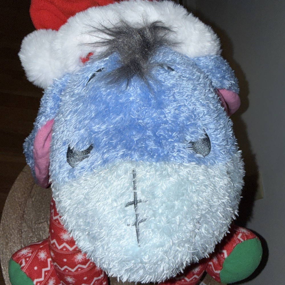 The Disney Parks Eeyore Holiday Weighted Plush is a 15'' collectible toy featuring the beloved character from Disney's Winnie the Pooh franchise. This special edition plush is themed around Christmas 2023, making it a must-have for fans and collectors alike. Made by Disney, this plush is sure to bring joy and festive cheer to anyone's holiday season.