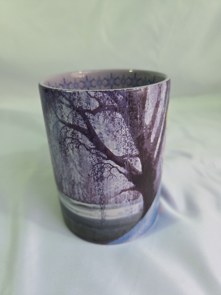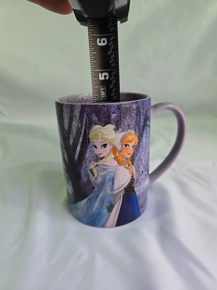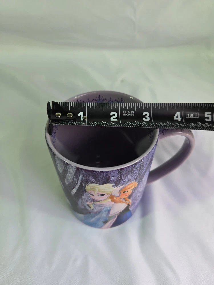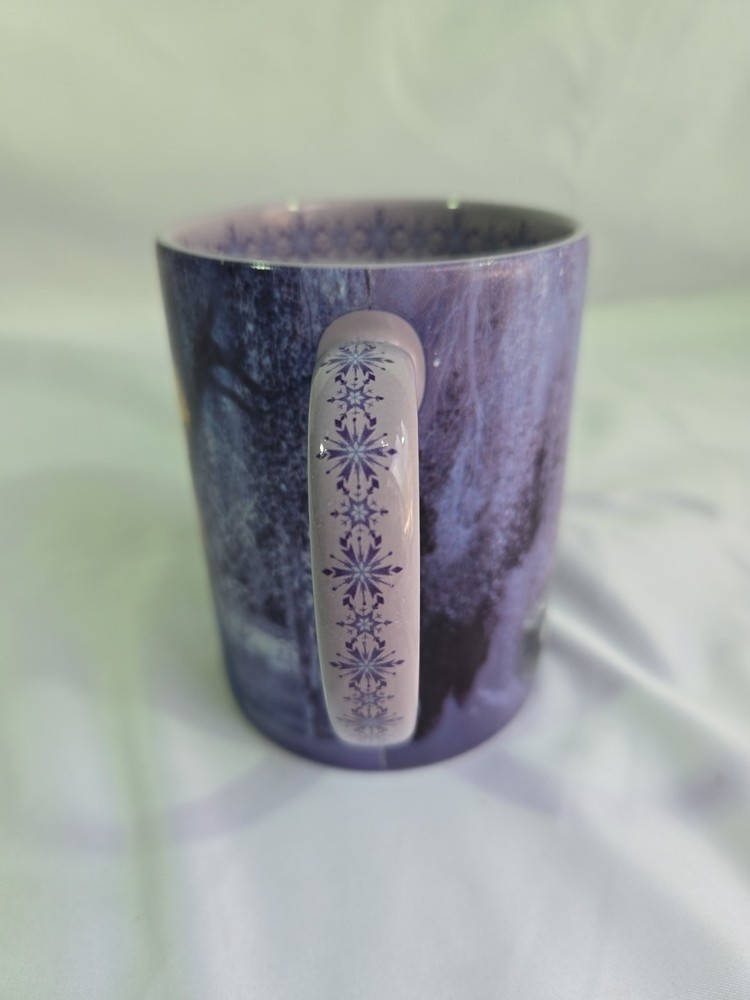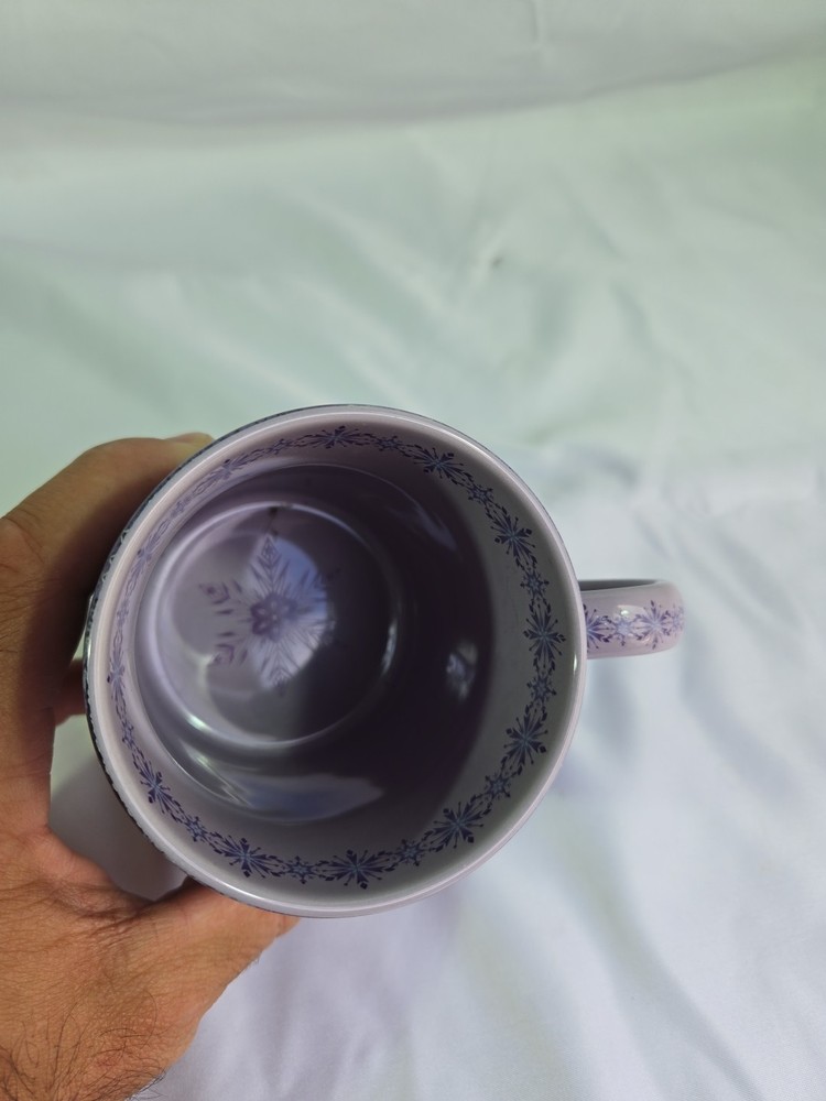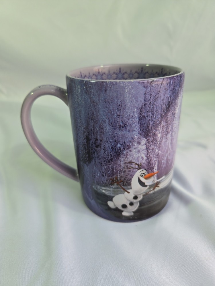 Genuine DISNEY PARKS Coffee Mug 16oz FROZEN Elsa Anna Olaf Purple Snowflake. Condition is Used. Shipped with USPS Ground Advantage.