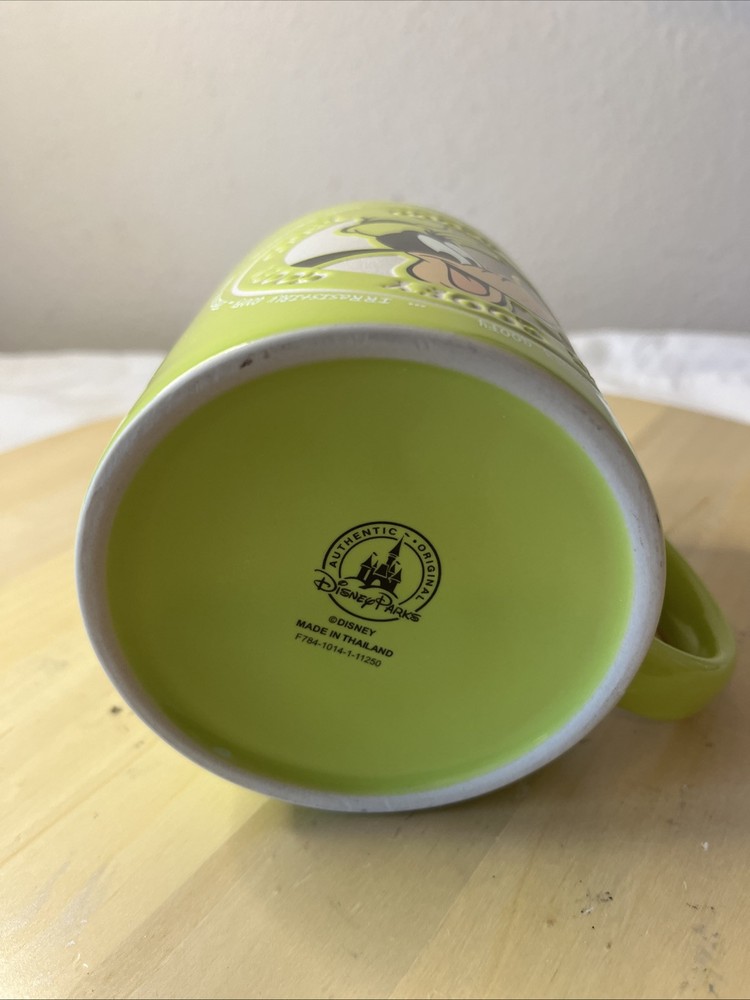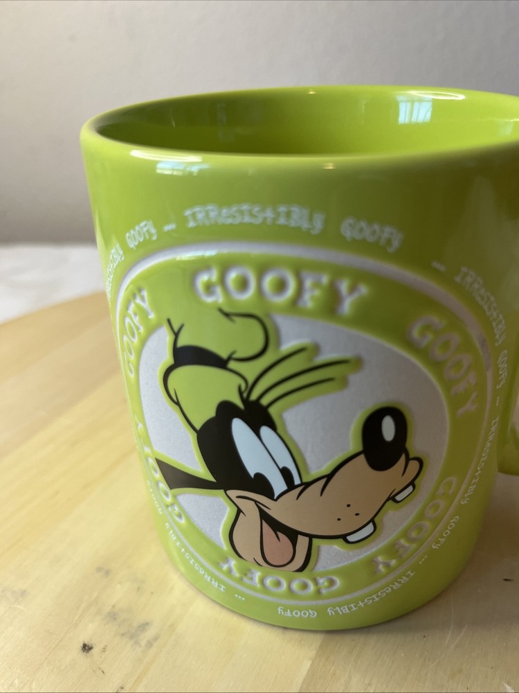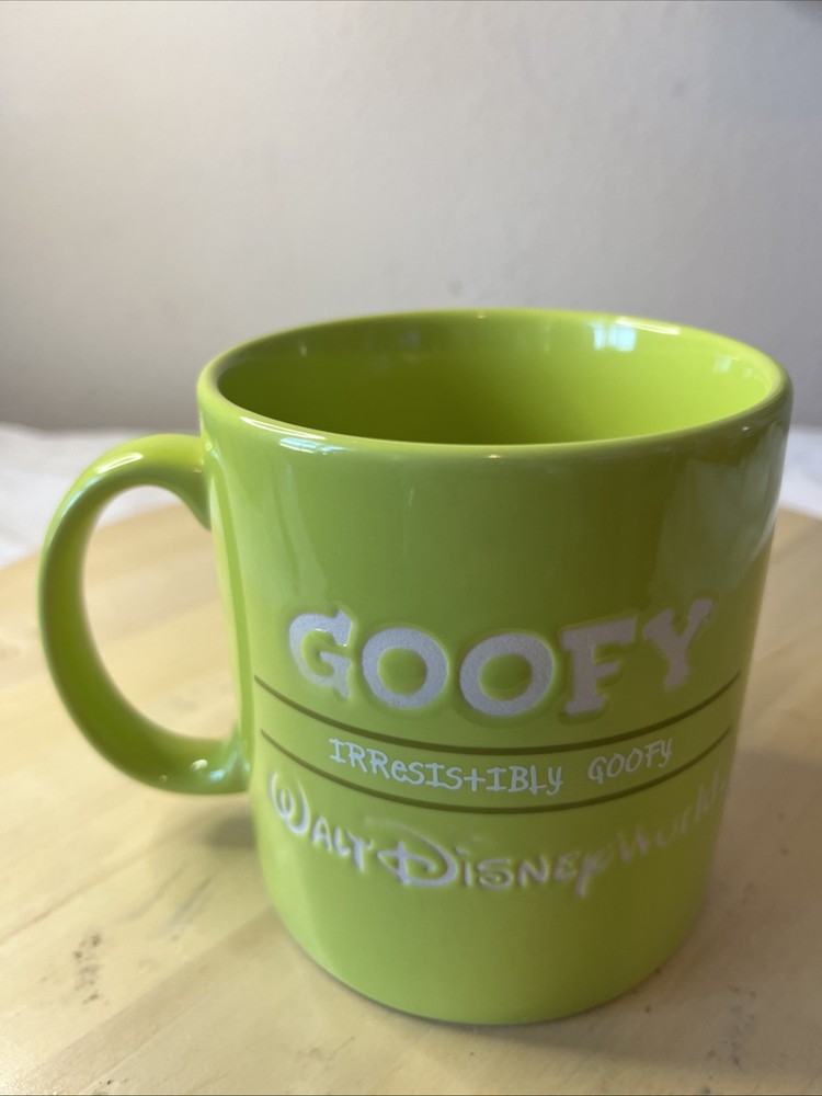 The Disney Parks IRRESISTIBLY GOOFY Oversized 20 oz Lime Green Mug is an authentic cup featuring the beloved Disney character Goofy. This officially licensed mug, part of the Walt Disney World franchise, is made in Thailand and showcases a fun and vibrant lime green color. With a generous 20 oz capacity, this mug is perfect for Disney fans looking to add a touch of whimsy to their collection.