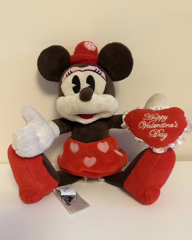This product is a Disney Parks Minnie Mouse Be My Valentine's Day plush toy, featuring the beloved Disney character Minnie Mouse and is part of the Disney franchise. The plush toy is perfect for collectors, Disney enthusiasts, and fans of Minnie Mouse.