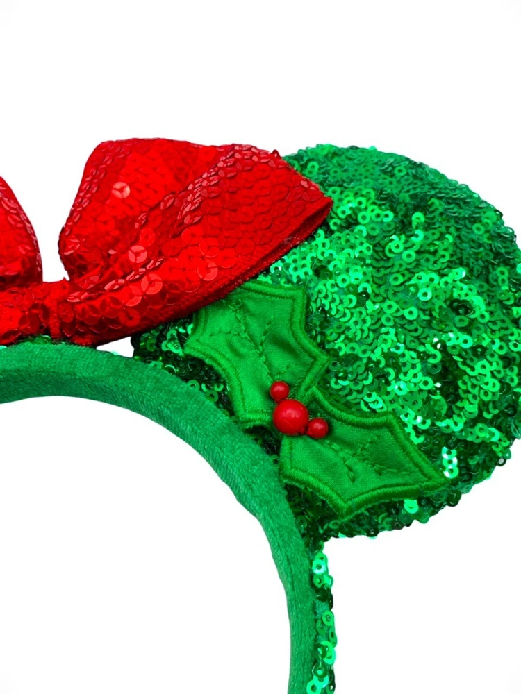 WE HAVE NOW BRANCHED OUT AND OPENED THIS STORE NAMED "URSTYLIN". WE HAVE BEEN A MEMBER WITH E-BAY SINCE 2002, TOP STAR SELLERS & HAVE OVER 11,000+ POSITIVE FEEDBACKS IN OUR OTHER STORE - LINK BELOW - BUY WITH CONFIDENCE ... https://www.ebay.com/str/rogershiddentreasures ** Disney Parks Minnie Mouse Christmas Sequin Ears & Bow Holly Berry Leaf Headband Theme Park Merchandise - Mint ! ** * CONDITION : MINT USED WITH HARDLY ANY SIGNS OF USAGE WEAR - VERY NICELY TAKEN CARE OF, HOWEVER , THE DISNEY TAG IS MISSING; VERY CLEAN WITH NO ODORS; NO SIGNS OF ANY TYPE OF FADING OR DISCOLORATION * SIZE : ADULT - ONE SIZE ONLY; THEME PARK MERCHANDISE * FEATURES : PLUSHY EARS & TOP SIDES OF HEADBAND MADE OF SPARKLING CHRISTMAS GREEN SEQUINS ACCENTED WITH A LOVELY BRIGHT HOLIDAY RED SEQUIN BOW; BEAUTIFULLY SEWN ON ONE EAR IS A GREEN SATIN RED BEADED HOLLY BERRY LEAF; INSIDE OF HEADBAND LINED IN CHRISTMAS GREEN VELVET * COMES FROM A SMOKE-FREE ENVIRONMENT WE SHIP WORLDWIDE *INTERNATIONAL BUYERS - PLEASE NOTE: *IMPORT DUTIES, TAXES AND CHARGES ARE NOT INCLUDED IN THE ITEM PRICE OR SHIPPING CHARGES. THESE CHARGES ARE THE BUYER'S RESPONSIBILITY *PLEASE CHECK WITH YOUR COUNTRY'S CUSTOMS OFFICE TO DETERMINE WHAT THESE ADDITIONAL COSTS WILL BE PRIOR TO BIDDING/BUYING