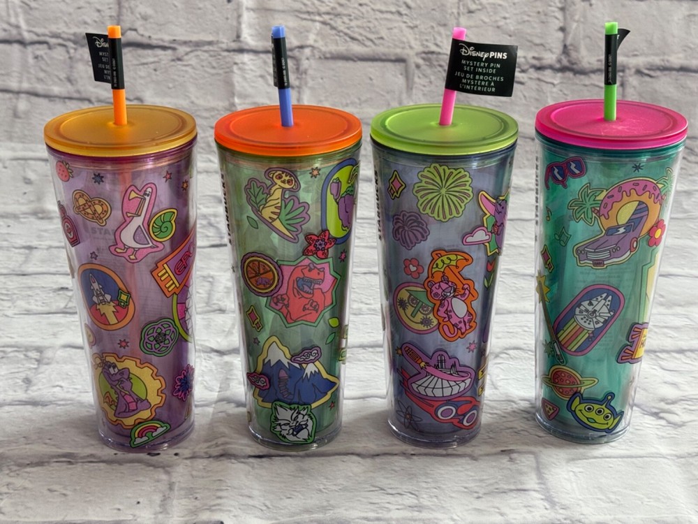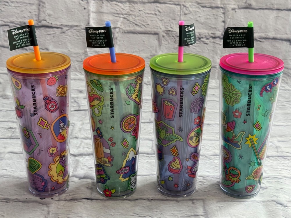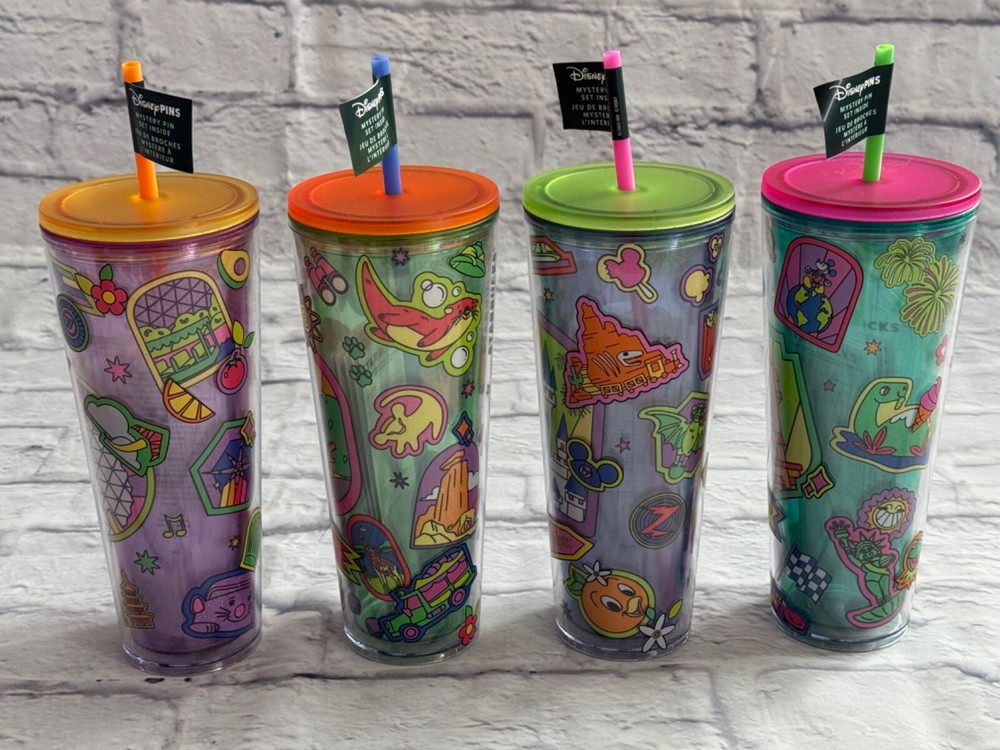 Set of 4 Walt Disney World Icon Starbucks Tumblers These are brand new, never used **please note - this listing is for the tumblers and straws only, no pins included - hence the large discount off of retail** From a smoke free home