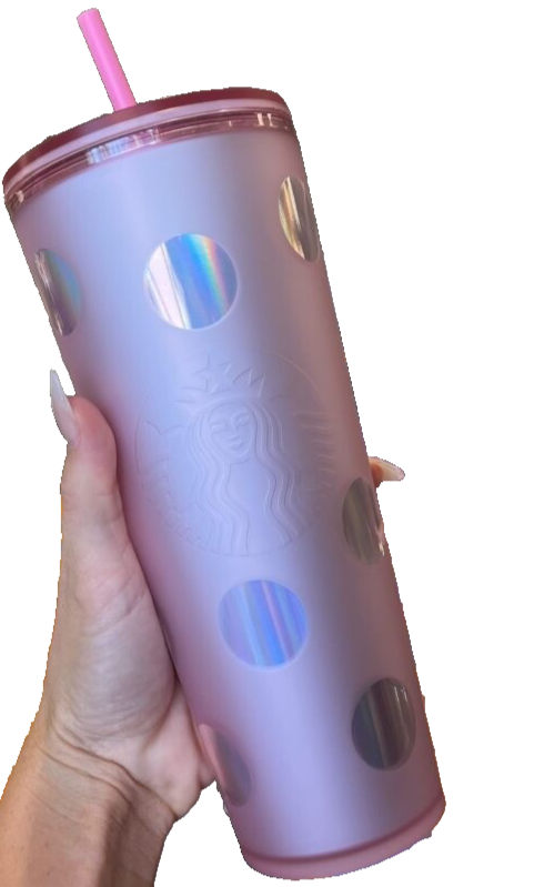 Brand New in Box and Lightning Fast Shipping- Always within 24 hours of payment! Drink-in happy memories of your trips to Disneyworld with this commemorative Starbucks® tumbler and straw. Featuring an allover iridescent polka dot pattern and classic Mickey Mouse silhouette, this pink cup is perfect for your next park day or Disney vacation. Cold beverage tumbler Iridescent polka dot pattern Iridescent Mickey Mouse silhouette Starbucks® logo ''Disneyworld'' logo text Screw on lid Coordinating straw with ring at bottom Part of the Piglet Pink Collection 11'' H x 3 3/4'' Diameter Holds 24 oz.