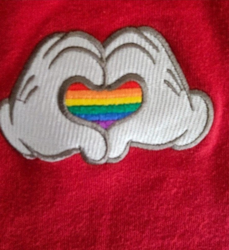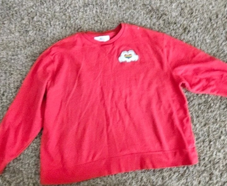 This Disney Parks women's sweatshirt is perfect for any Disney fan. The pullover style with a crew neck and long raglan sleeves makes it easy to wear and comfortable. The red blended fabric is breathable and lightweight, making it suitable for all seasons. The sweatshirt features a heart-shaped rainbow design with Mickey Mouse gloves, adding a fun and playful touch to your activewear. It's perfect for gym & training, walking, or just a casual day out. The sweatshirt is machine washable and made of polyester and cotton. Get your hands on this Disney Parks Rainbow Heart sweatshirt today!
