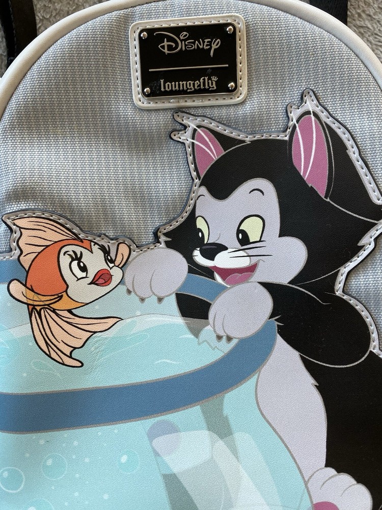 LOUNGEFLY x DISNEY PINNOCHIO'S FIGARO CAT & CLEO FISH MINI BACKPACK There is signs of wear, see pictures. Very clean interior JJ