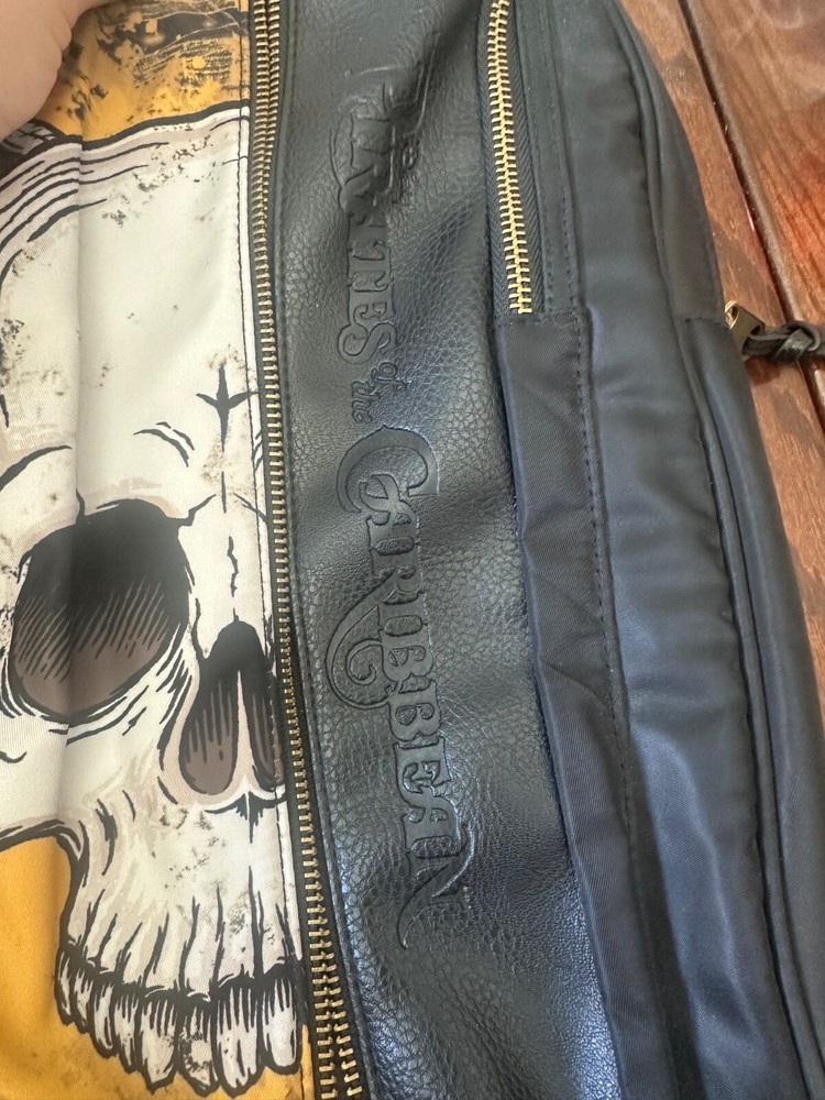 The Disneyland Pirates of the Caribbean sling backpack is a collectible item inspired by the popular Disney franchise. Featuring iconic elements from the Pirates of the Caribbean theme, this backpack is a fun and unique way for fans to show off their love for the adventurous world of pirate ships and hidden treasures. Perfect for Disney enthusiasts and collectors, this item captures the magic of the beloved theme park attraction.
