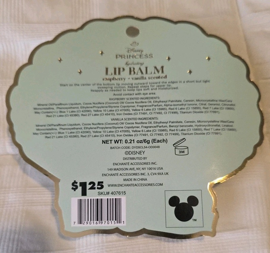 The Disney Princess Ariel & Flounder Hydrating Lip Balm features a delightful raspberry and vanilla scent, making it a sweet addition to your lip care routine. With a focus on hydration, these lip balms are formulated with coconut oil for a moisturizing and ultra-hydrating experience. Each pack includes two lip balms, each weighing 0.21 oz, ensuring you have a steady supply of high-shine, ultra-hydrating lip care on hand. Perfect for fans of Disney Princesses and those looking for a touch of enchantment in their beauty routine.
