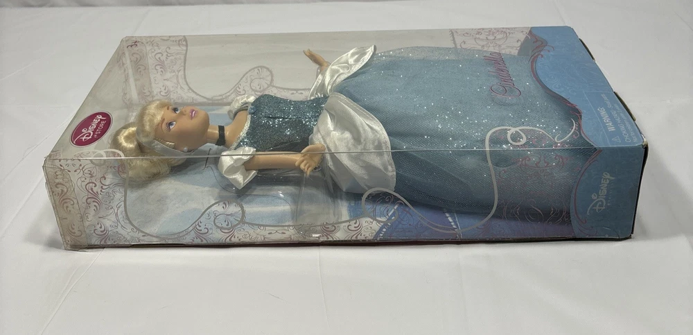 Add a touch of magic to your child's playtime with this Disney Princess Cinderella Doll from the Classic Collection. This 12-inch fashion doll features blonde hair and beautiful blue eyes, and is made of durable plastic material. Perfect for kids aged 3 and above, this original and licensed reproduction doll is a must-have for any Cinderella fan. The set includes the doll itself, and is part of the Cinderella Barbie product line. Let your child's imagination run wild with this beloved Disney character. Please note this doll has never been played..still remain in very good condition ..the box has some small scratches and spots due to movement..please before purchase feel free to reach out to us for any questions or to post more pictures 😊