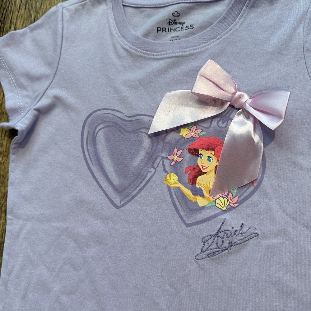 Disney Princess Ariel girls graphic t-shirt. Featuring a soft purple color with a fun Ariel graphic and sweet bow accent, this tee is perfect for school, play, or casual outings. Details: • Brand: Disney Princess • Character: Ariel • Size: Girls M (7/8) • Color: Purple • Style: Graphic T-Shirt • Sleeve Length: Short Sleeve • Neckline: Crew Neck • Accents: Bow Condition: New without tags. Item is unused with no holes, stains, or defects. See photos for full details. Care: Machine washable From a smoke & pet free home. Fast shipping!
