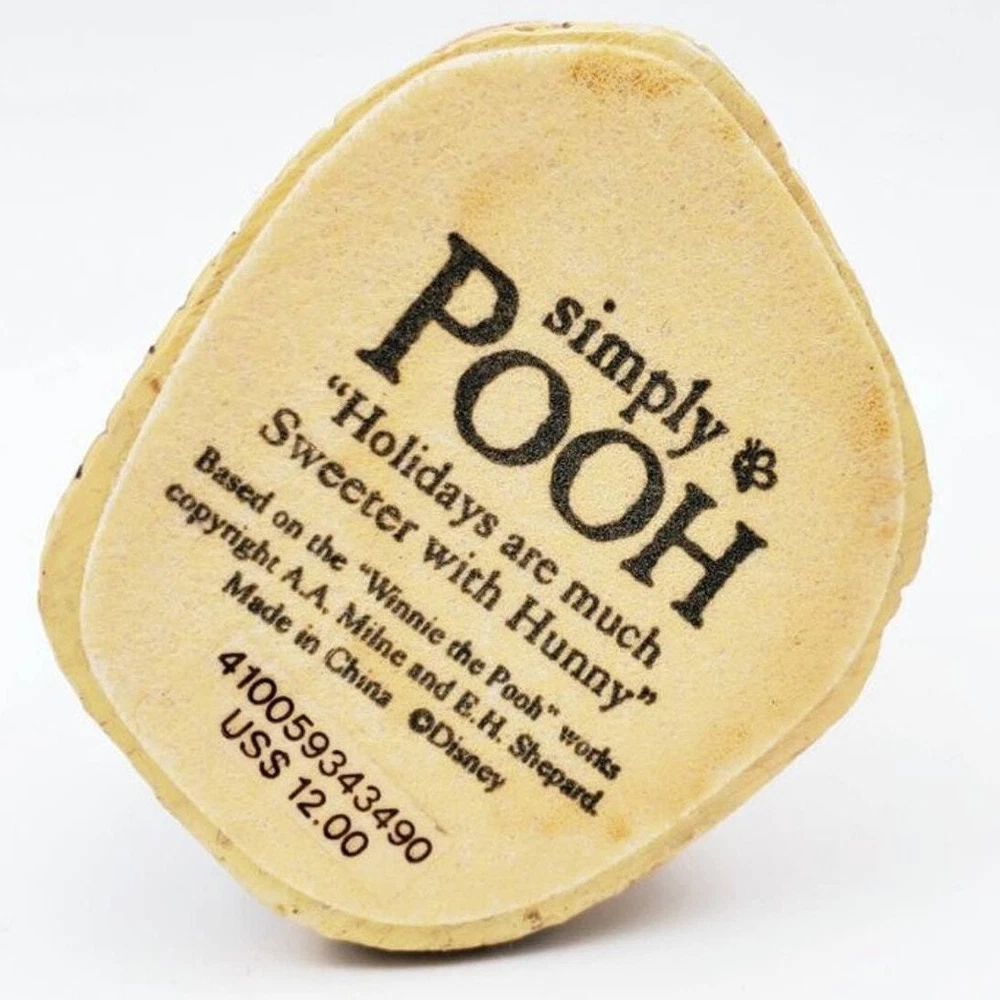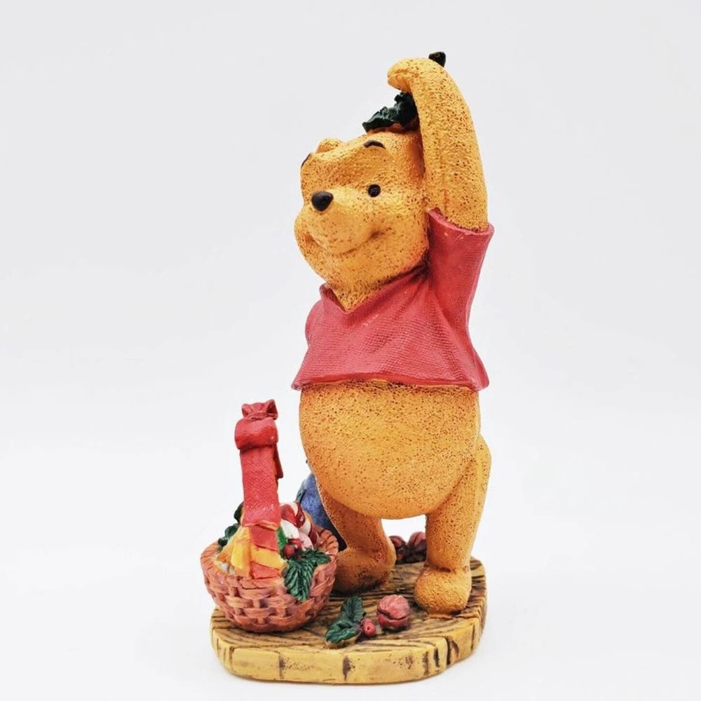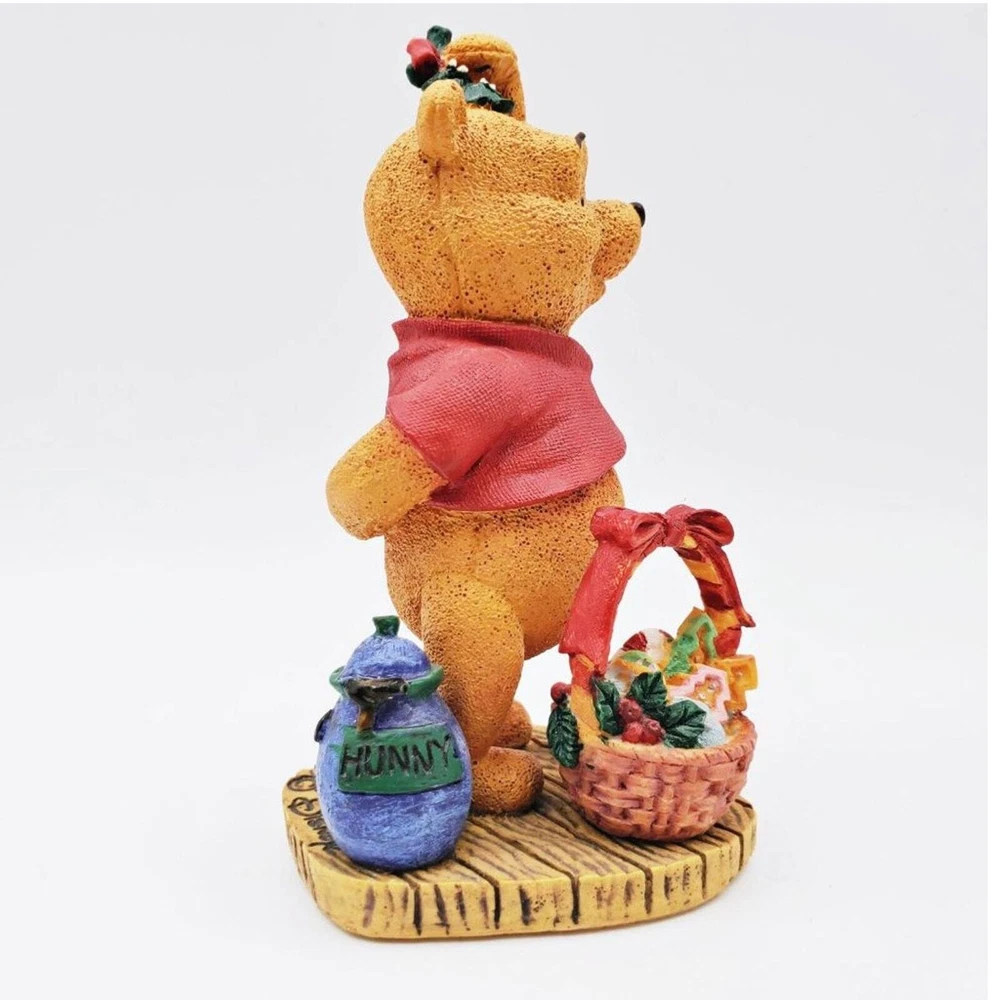 Embrace the holiday magic with this Disney Simply Pooh Mistletoe Christmas figure! This adorable small figure features Winnie the Pooh standing under a bundle of mistletoe, ready to spread festive cheer. Complete with a basket of treats and a Hunny pot, it perfectly captures Pooh's sweet and playful holiday spirit. Made from high-quality materials with intricate details, this collectible is a charming addition to any Disney or holiday décor. Whether you're a Pooh fan or seeking a festive touch for your home, this figure is a must-have. Don’t miss out—order now to bring joy and warmth to your holiday season! Size: Measurements photographed are in Millimeters Condition: Light wear. Have a magical day! Cat-friendly, smoke-free home.