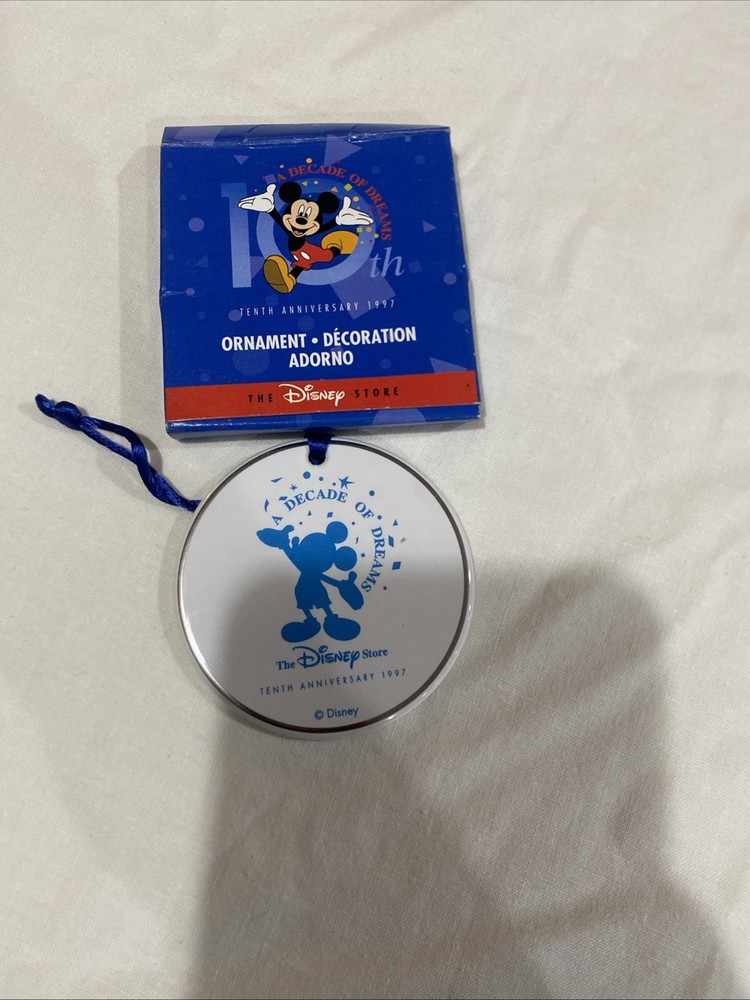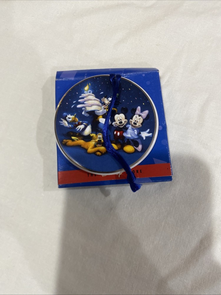 Celebrate Disney's 10th anniversary with this rare and collectible porcelain Christmas ornament featuring a birthday cake design with Mickey Mouse. Released in 1997, this Disneyana collectible captures the magic and nostalgia of the beloved franchise. Perfect for any Disney fan or collector, this ornament is a unique addition to your holiday decorations or display. Made of high-quality porcelain, this ornament is a timeless piece that celebrates the iconic character and story of Mickey Mouse.