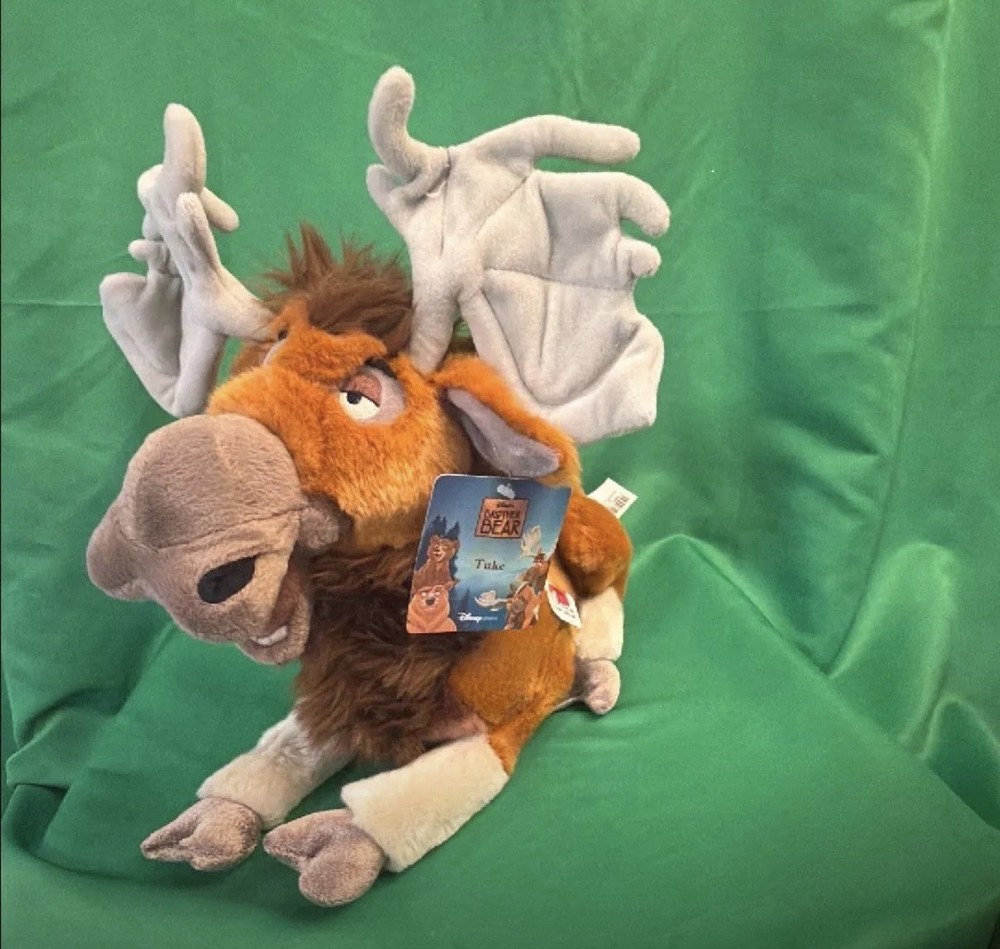 RARE Disney Store Brother Bear Large Plush Set (4) - Koda, Kenai, Rutt & Tuke NWT Up for sale is a complete, rare set of four (4) large-scale plush characters from Disney’s 2003 animated classic, Brother Bear. These are the highly sought-after Disney Store exclusives, measuring between 14 and 16 inches. All four plushes are in New With Tags (NWT) condition, featuring the original cardboard hangtags and official Disney Store "Authentic" tush stamps. What’s Included: • Kenai (16"): The hero in his bear form, featuring soft chocolate-brown fur and his iconic "Totem" necklace. • Koda (14"): The energetic cub with his signature light-colored snout and chest tuft. • Rutt & Tuke (16"): The hilarious moose brothers with felt antlers and "furry" manes. (Hard to find as a matching tagged pair!) Condition Highlights: • Authenticity: Official Disney Store Exclusives. • Status: New with original hangtags All items are sold as is with no refunds or returns