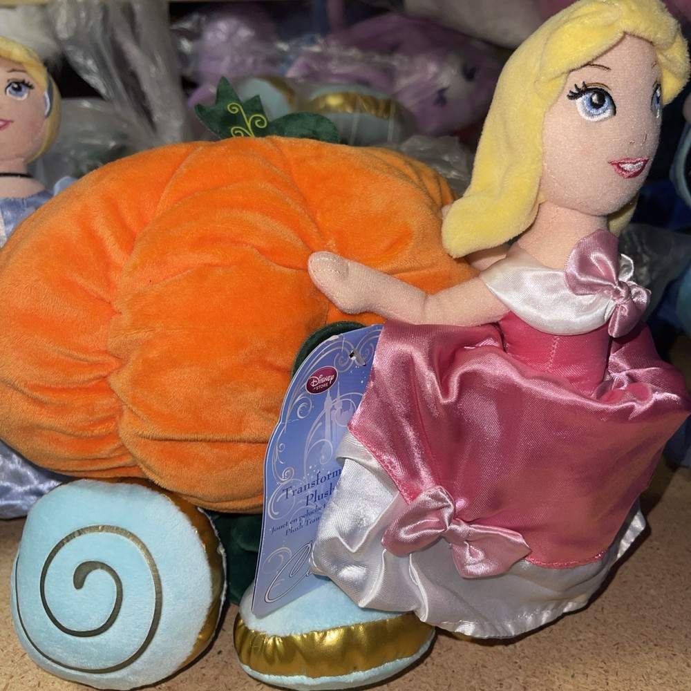 Disney Store Cinderella Plush Doll carriage transforming Condition is New. Shipped with USPS Ground Advantage. It is on plush doll reverses to pink or blue Cinderella Carriage reverses to pumpkin or carriage Photo shows two so you can see but you only get one