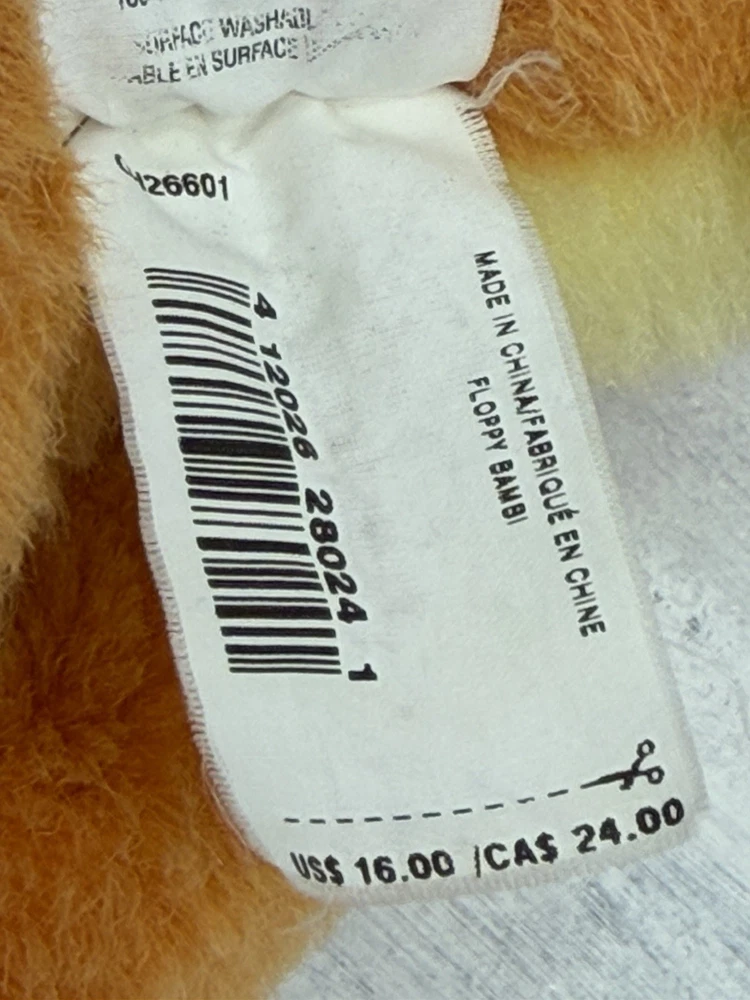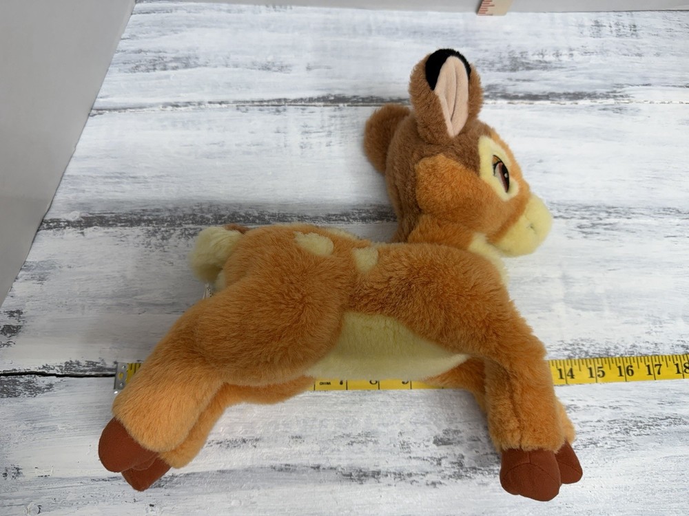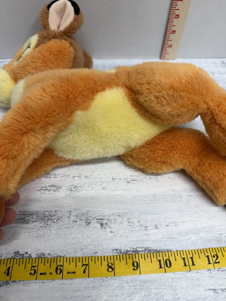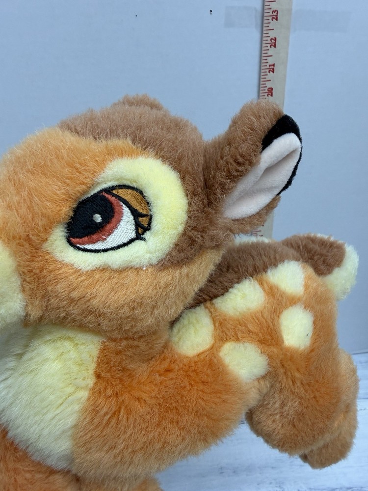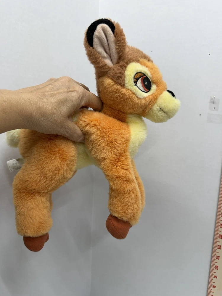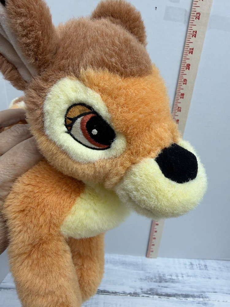 Walt Disney's Floppy Bambi, exclusively available at Disney Store. This brownish -orange colored plush toy is based on the beloved character from the Disney franchise, making it a must-have collectible for fans of Disneyana. Made in China, this plush toy captures the charm and nostalgia of the classic animation, making it a perfect addition to any Disney-themed collection. So sweet and huggable in great condition. The tags are faded from washing. This would be great for a small child to hold carry around or sleep with. Comes from a smoke and pet free home , thank you