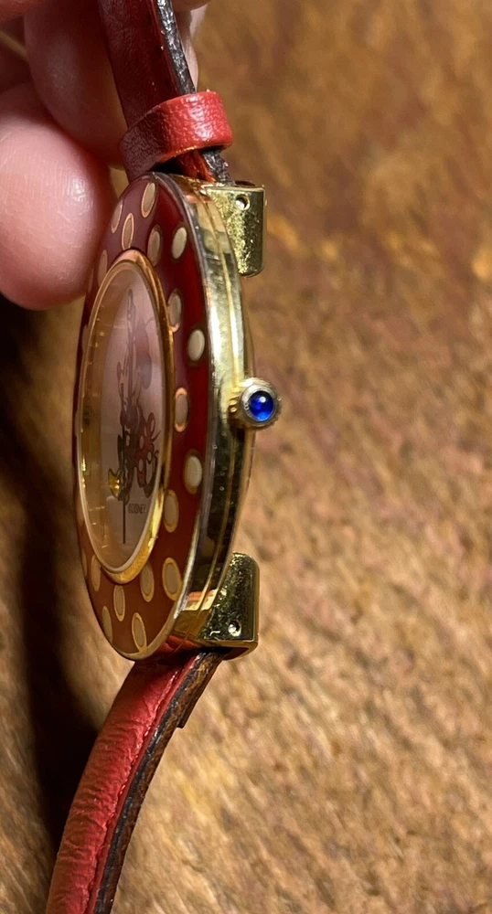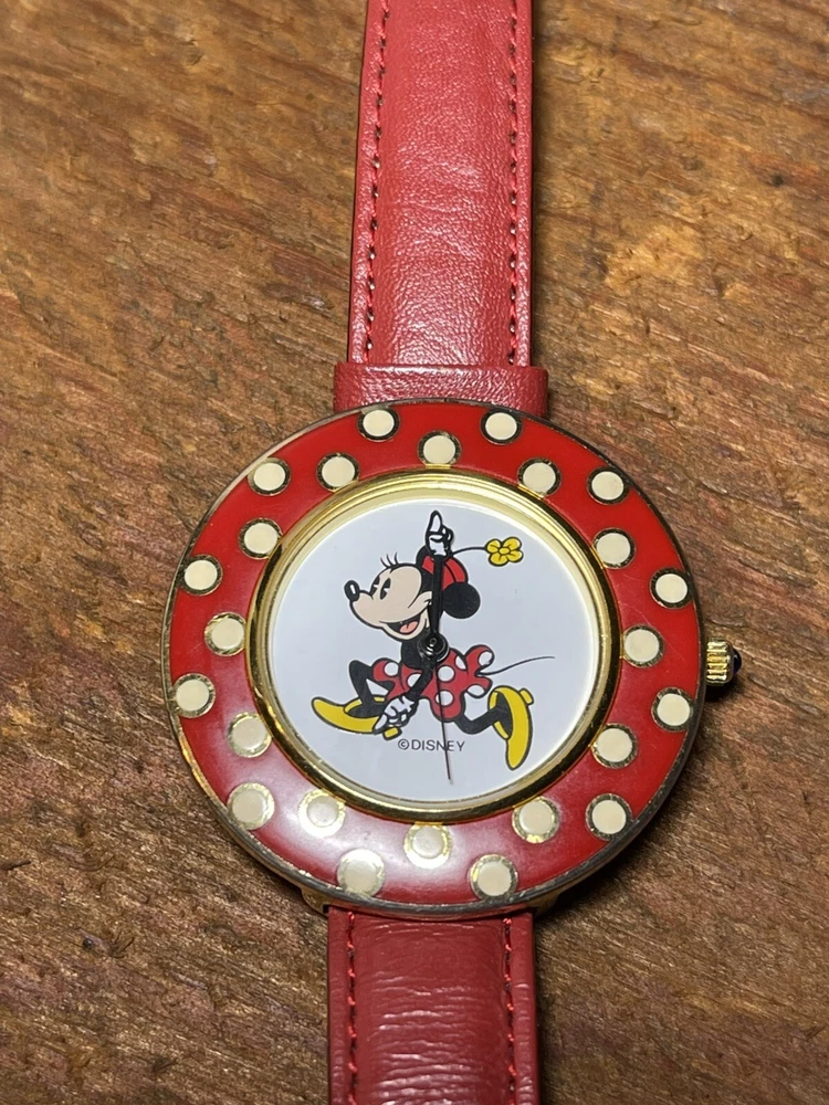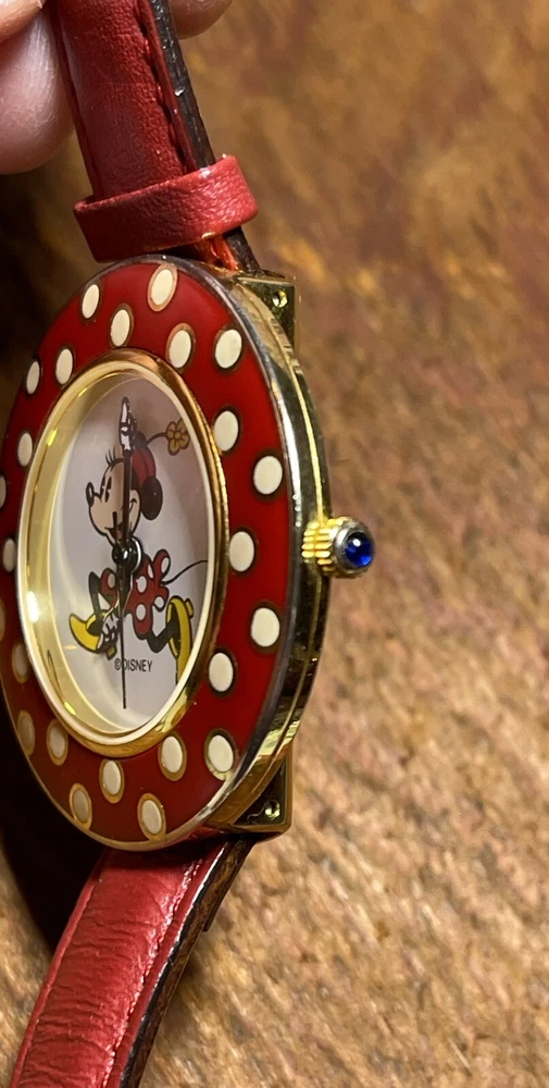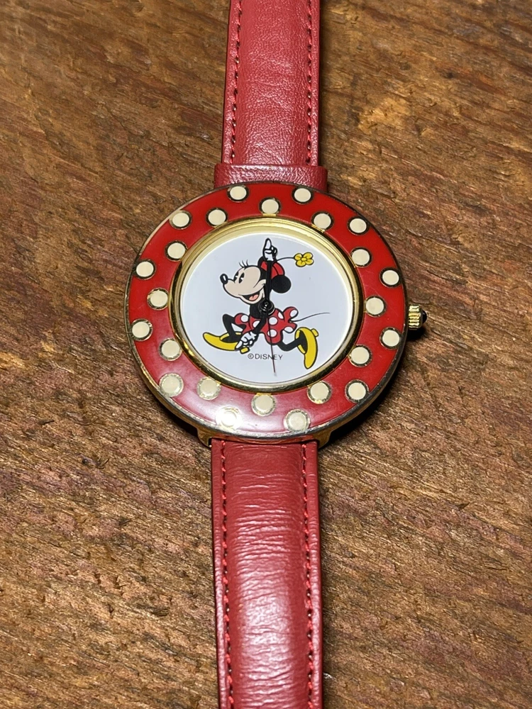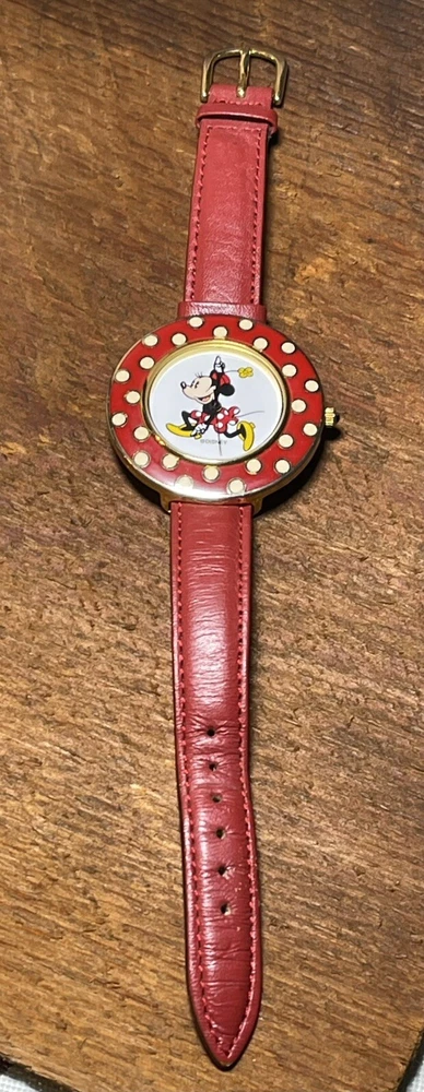 Disney Store Minnie Mouse Retro Watch Ladies Red Leather Band Needs Battery
