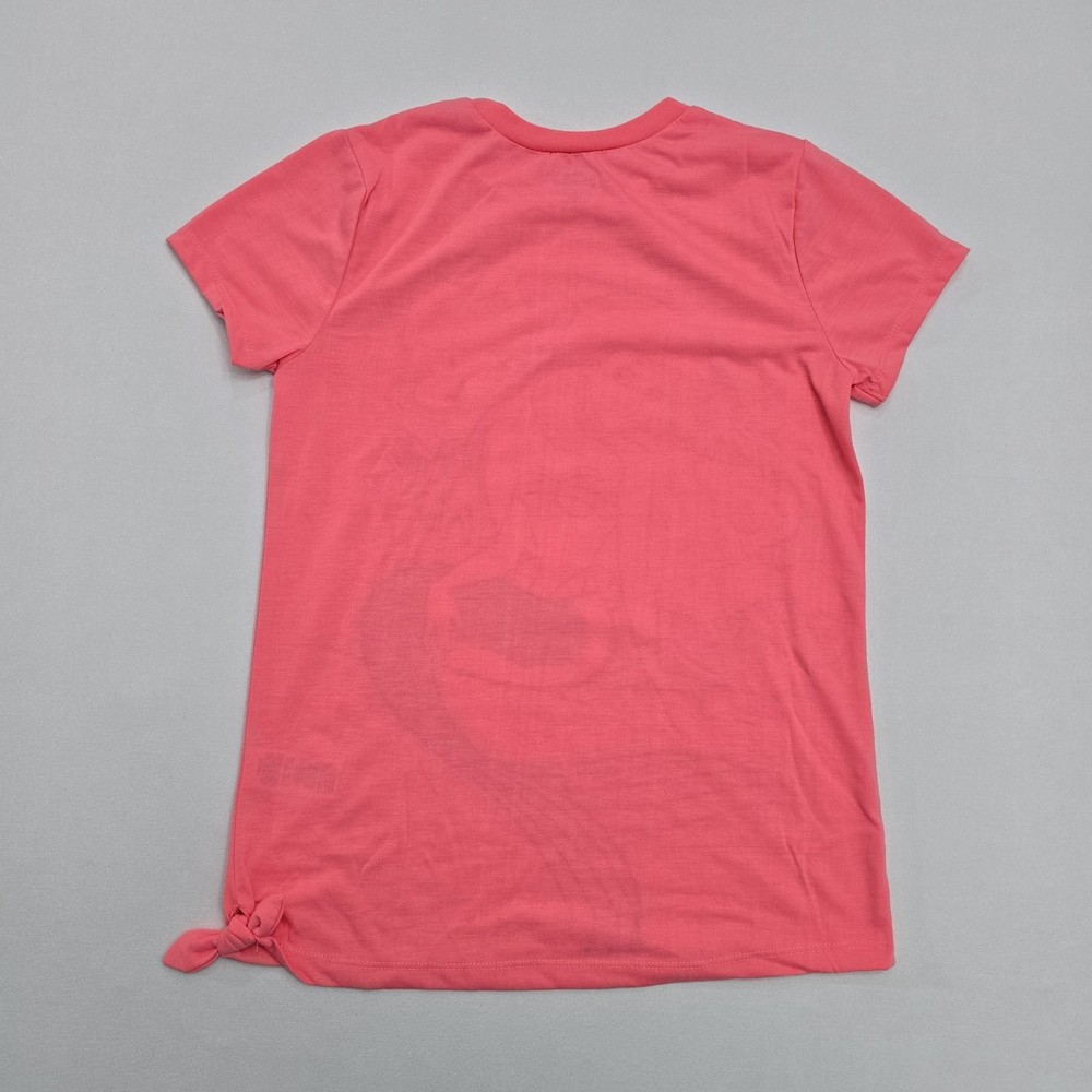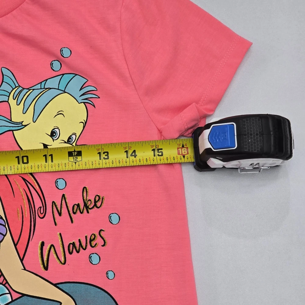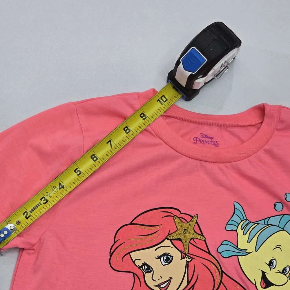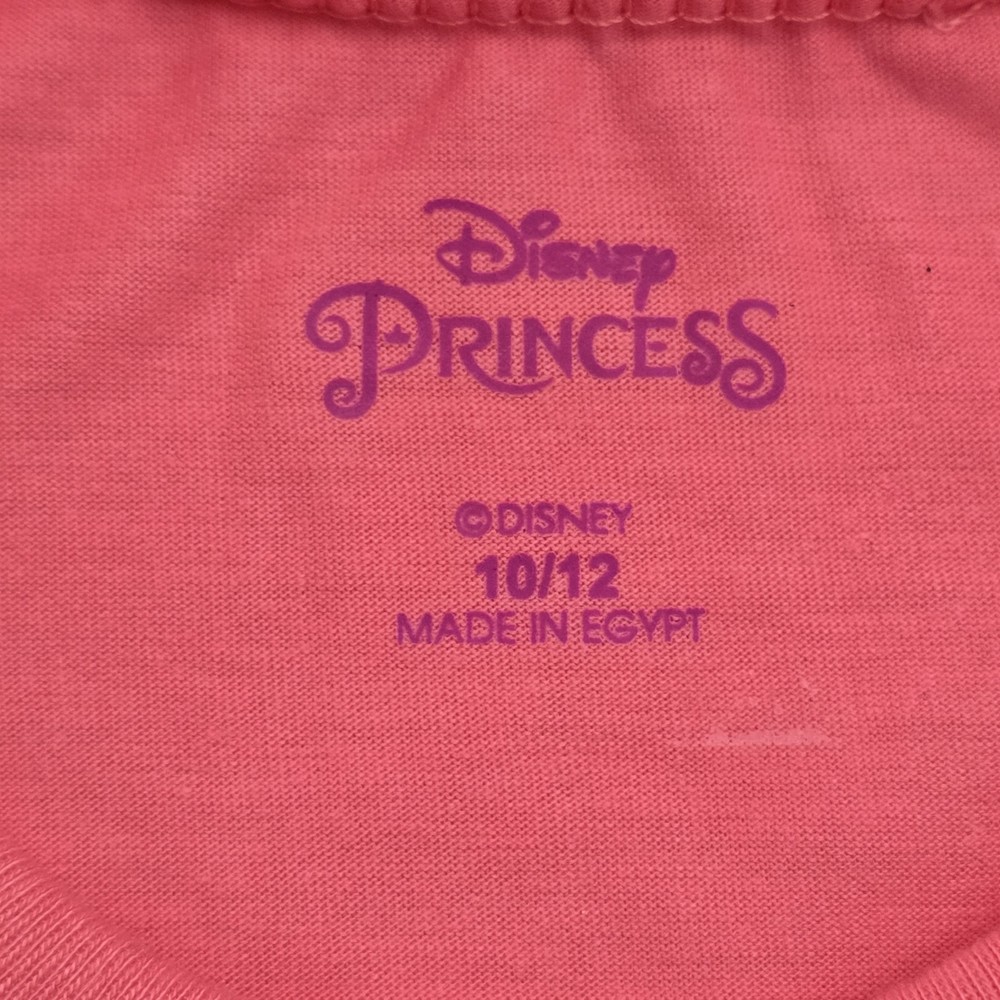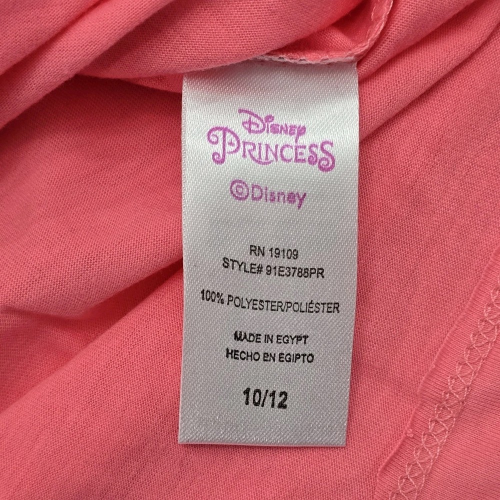 Material: 100% Polyester Fabric Type: Knit Fit: Regular Features: All Seasons, Easy Care, Lightweight Department: Girls Style: Basic Occasion: Casual, Travel, Party Sleeve Length: Short Sleeve Pattern: Graphic Print Character: Ariel, Flounder, Mermaid Vintage: No Type: T-Shirt Garment Care: Machine Washable Closure: Pullover Handmade: No Performance/Activity: School, Walking Country of Origin: Egypt Brand: Disney Size: 10-12 Color: Pink Personalize: No Accents: Bow Season: Fall, Spring, Summer, Winter Neckline: Crew Neck Character Family: Disney Theme: Mermaid, Princess, Cartoon, TV & Movie Characters