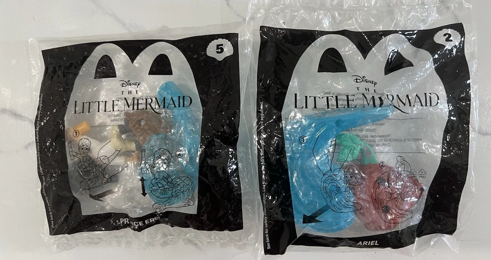 This Disney The Little Mermaid McDonald’s Happy Meal Toy features Eric and Ariel, the beloved characters from the hit movie. It is a perfect addition to any Disney or fast food premium toy collection. The toy is designed for children of all ages, from 3 to 100!, and is sure to bring joy and nostalgia to any fan of the movie. The toy is made by Disney and McDonald's, ensuring its quality and authenticity. It is a great gift for any occasion, or a fun surprise for yourself.