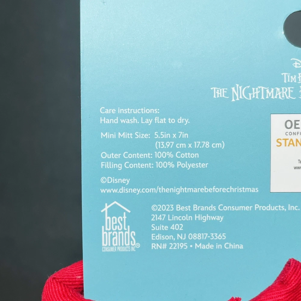 Number of Items in Set:2Type:Oven MittPattern:ChristmasColor:MulticolorModel:Disney The NightmareOccasion:ChristmasUPC:Does not applyMaterial:100% Cotton, 100% PolyesterTheme:HolidaySize:5.5”x7”Department:HomeSet Includes:2 Mini MittsCharacter:Jack SkellingtonBrand:Disneygtin13:Does not applyCharacter Family:The Nightmare Before ChristmasCustom Bundle:No