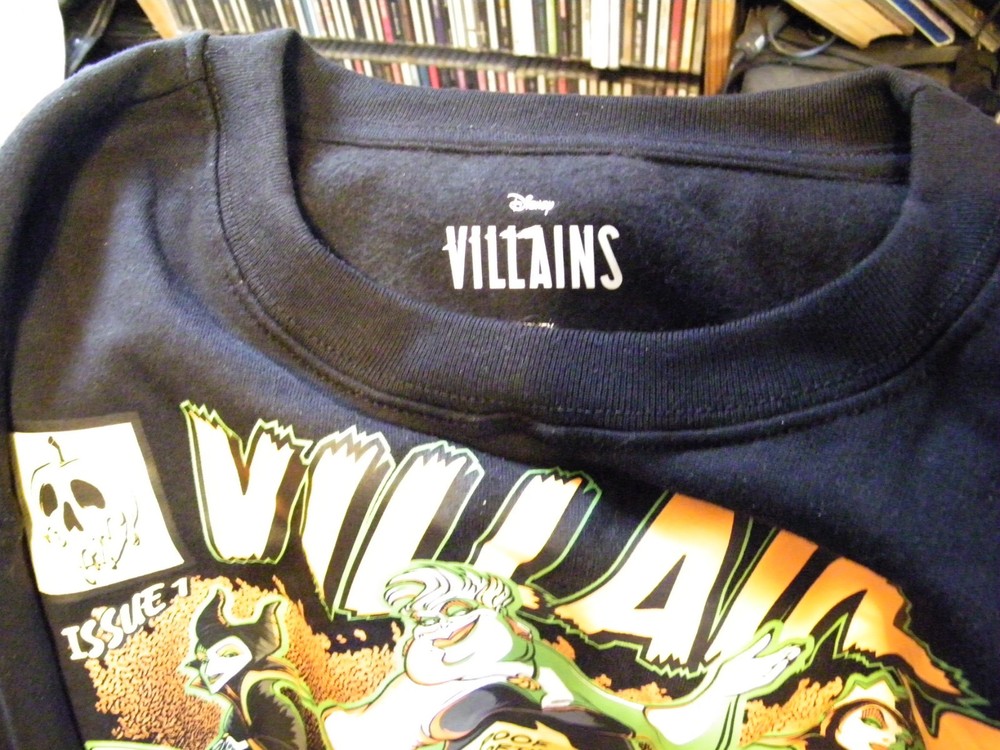 This Disney Villains Sweatshirt in Xtra Small size features long sleeves, a pullover style, and a solid black color with a crew neck neckline. Made from a polyester and cotton blend material, this sweatshirt is machine washable and suitable for activewear during the winter, fall, or spring seasons. The character Maleficent is prominently displayed, making it a perfect addition to any Disney fan's wardrobe. Xtra small size 0-2 women's.