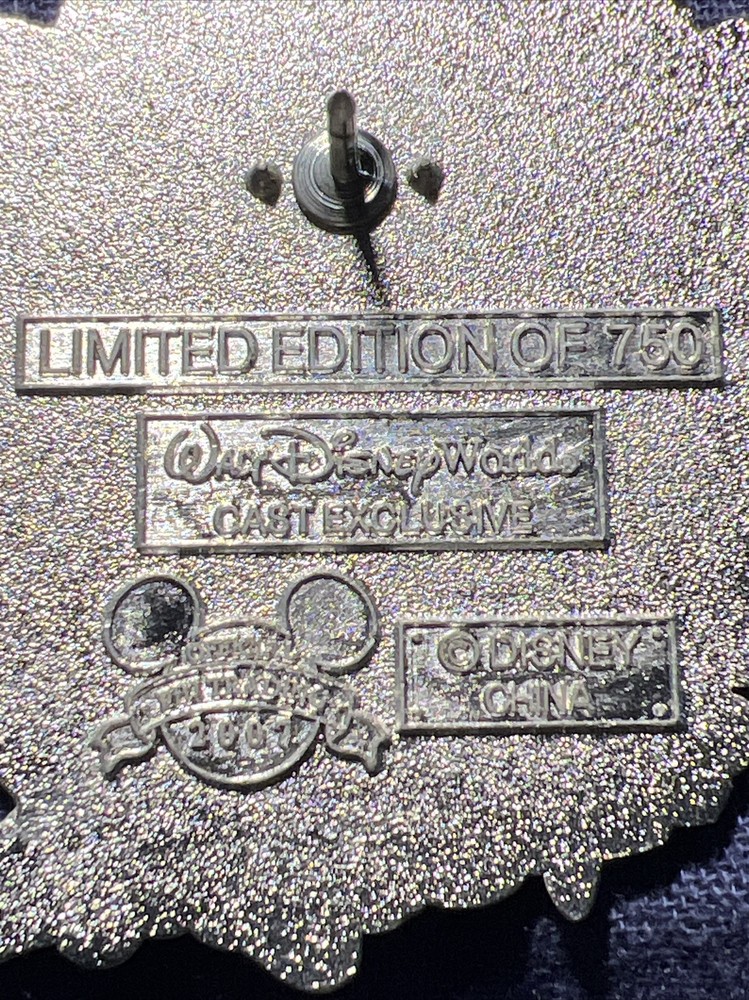 This pin features Ariel and King Triton from The Little Mermaid. King Triton and his daughter Ariel celebrate Father's Day 2007 in this Limited Edition, Cast Exclusive pin. Pins reads: "Happy Father's Day 2007" This pin will be released at Company D locations, and will only be sold to Cast Members and certain other employees of the Walt Disney World® Resort.