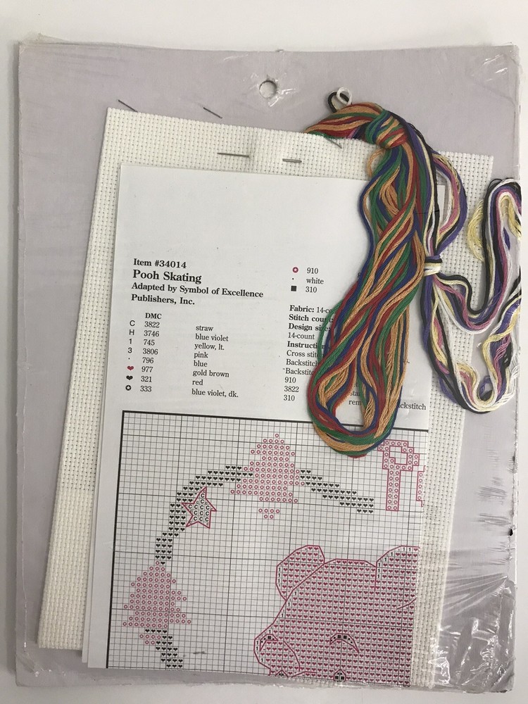 Disney CROSS STITCH KIT Winnie The “Pooh Skating” # 34014 NEW *Read* The package has a small tear in the package. Please see photos for details.