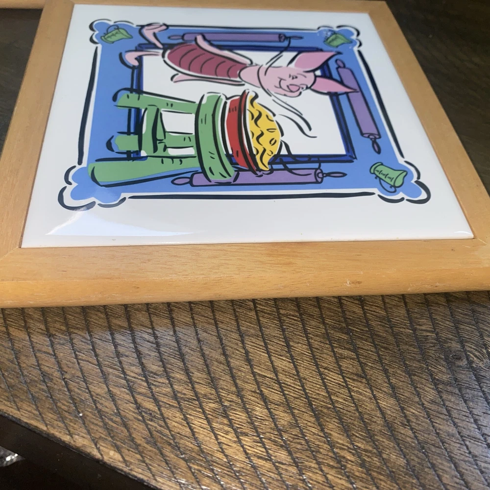 These collectible Winnie the Pooh and Friends and Piglet wall plaques or trivets feature beloved characters from Disney's Winnie the Pooh franchise, including Piglet, Pooh, Eeyore, and Tigger. Measuring at 7” by 7” these picnic Winnie the Pooh and Piglet art can be hung on the wall or used as trivets. They are a must-have for any Disney or Winnie the Pooh collector. Made in Taiwan, these pieces are a great addition to any collection and sure to bring joy to any fan. These are in good used condition. Any scuffs or marks are shown in photos.