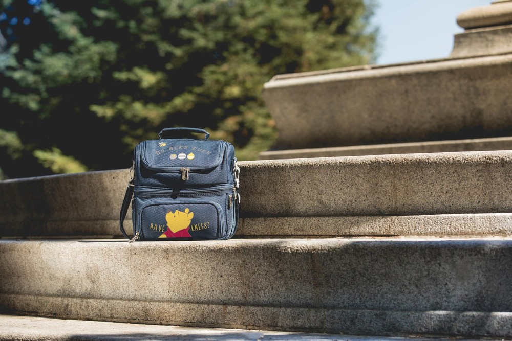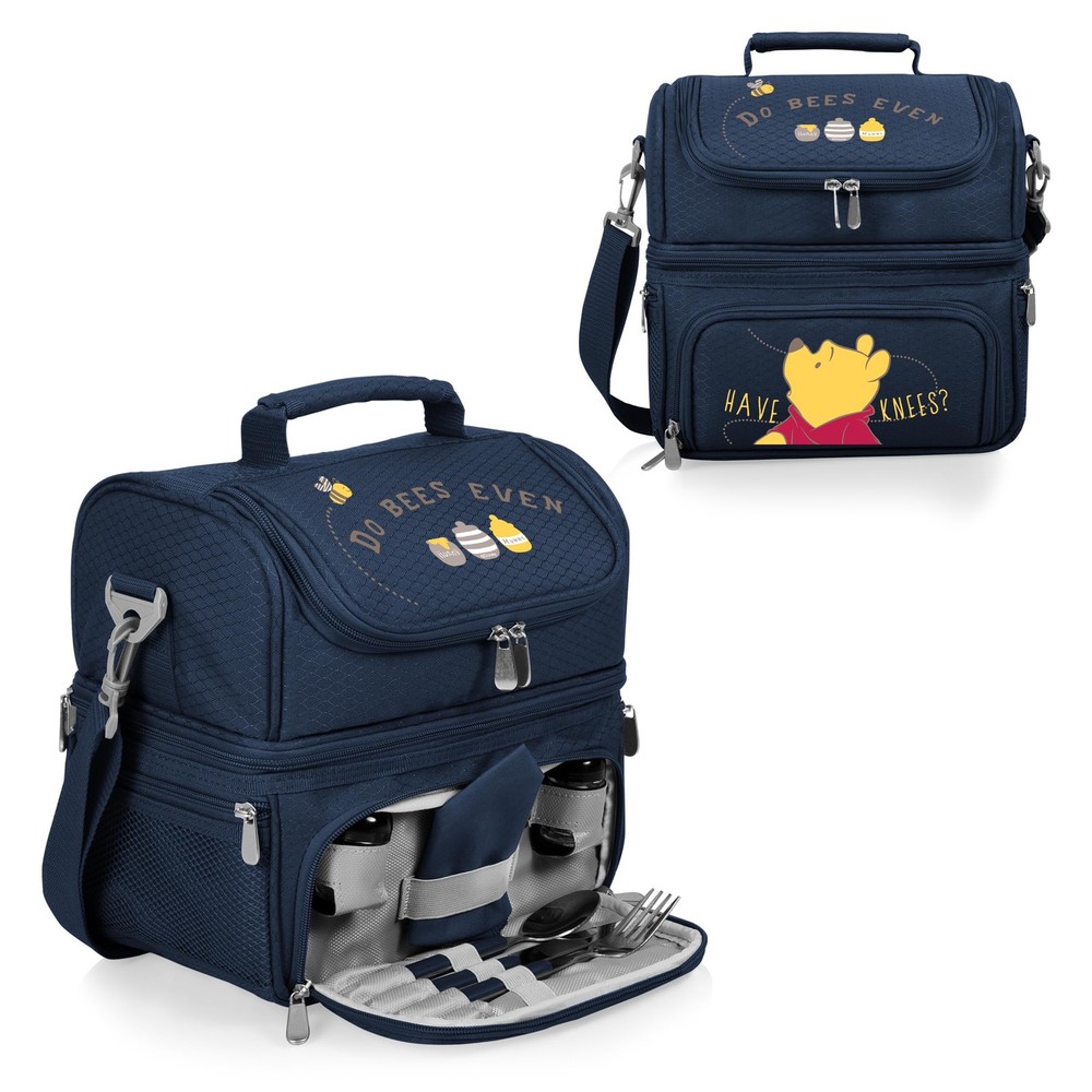 DISNEY LUNCH - The Winnie the Pooh Pranzo Insulated Lunch Bag is the ideal picnic cooler for Disney superfans on the go, at university, or at work with a cute and quirky Winnie the Pooh design PREMIUM LUNCH BAG - This all-in-lunch cooler features a durable polyester construction with isolated sections for hot and cold foods, meaning your hots stay hot and your colds stay cold READY TO SERVE - Includes a picnic set with stainless steel silverware, s & p shakers, and 100% cotton napkin stowed in the zippered front pocket, plus zippered mesh pockets on the sides for storage WINNIE THE POOH LUNCHBOX - Our lunch bag features an adjustable shoulder strap and a soft grip handle. At 11.75 by 7.25 by 12 inches this lunch cooler is large enough to satisfy an adult-size hunger BUILT TO LAST - Product quality backed by the Family of Brands, a family-owned business in California