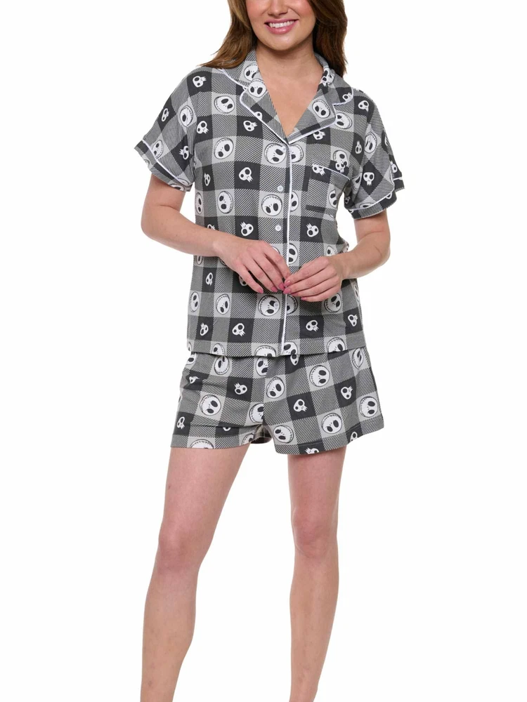 OFFICIALLY LICENSED | UNIQUE APPAREL AND ACCESSORIES | 100% AUTHENTIC | FREE STANDARD SHIPPING | HASSLE-FREE RETURNS HOME JUNIORS WOMEN PLUS SIZE MEN KIDS TOTE BAGS BACKPACKS DISNEY Disney Womens Jack Skellington 2 Piece Button Shirt and Short Pajama Lounge Set Product Details This officially licensed Jack Skellington sleep set is so soft and cozy! The Nightmare Before Christmas pajama shorts and button up top are lightweight and breathable for a comfortable yet stylish fit. This hacci knit pajama set is super soft with the right amount of stretch to keep you cozy and comfortable all night long. It makes a great gift for you or someone else! Also great for a matching pajama moment! Whatever the occasion, this pajama set will be the star of the show. This set features a white and black plaid background with an all over print of Jack Skellington's face with his classic smile. Perfect for all Nightmare Before Christmas lovers! Available in sizes small-extra large. Please refer to the size chart in the photos for more details regarding sizing. Disney Jack Skellington All-Over Print Womens T-Shirt and Hacci Shorts Set. Features an all-over print of Skellington. Relaxed fit, soft and comfy elastic waist. Poly spandex . Super soft fabric. Women's sizing. Shorts measures approximately (laid flat): Waist:. Inseam: Length (from waist): Machine Wash cold with similar colors, inside out. Only non-chlorine bleach when needed. Tumble dry low, remove promptly. Low iron if need. No not iron decoration. Officially Licensed Disney apparel! Brand Disney Color Black Material Polyester Style Lounge Pants, Sleep Shorts Height Length Width WS24SS143-S CLICK HERE TO BROWSE ALL OUR ITEMS OR SHOP BY CATEGORY BELOW: MEN SHOP NOW WOMEN SHOP NOW PLUS SIZE SHOP NOW KIDS SHOP NOW BAGS & ACCESSORIES SHOP NOW SHOP BY BRANDS Quick Links Payment Details Shipping Details Returns About Us Contact Us Store Home Add to Favorites New Arrivals Ending Soon Feedback Payment Options Secure Payments by Store Newsletter Add Store to your Favorites and receive email newsletters about new items and special promotions! Sign Up Now Copyright © Open and Clothing