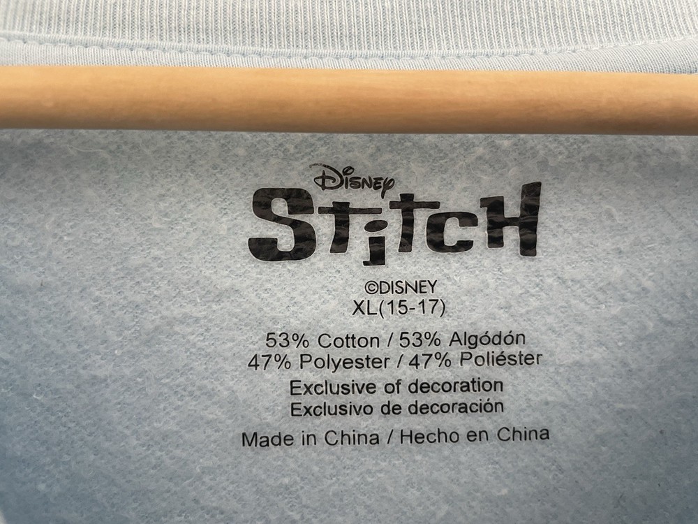 Disney Women's Lilo & Stitch Cute Textured Stitch Cotton Blend Sweatshirt Blue XL. Condition is pre-owned. Smoke free, pet free home. Shipped via USPS Ground Advantage. In very good condition. Free of rips or stains.