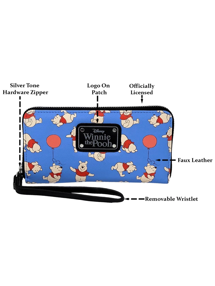 Disney Women's Winnie The Pooh Wallet All-Over Print Zip Around Wristlet