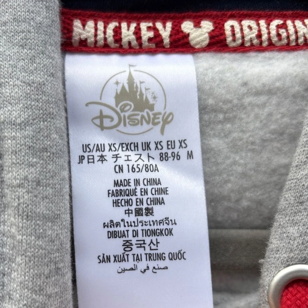 Disney Walt Disney World Mickey House Hoodie Hooded Sweatshirt Retro Style Gray Front Pouch Pocket Striped Ribbed Elastic Trim Drawstring Hood “Walt Disney World” Embroidered on Hood Fuzzy 3D Mickey Appliqué on Bodice Cotton Blend 80% Cotton, 20% Polyester Fleece Lined Soft and Cozy Comfortable High Quality Classic Women’s Size XS Approximate Measurements: Chest Flat Lay: 21 1/2” Sleeve Length: 22” Total Length: 23 1/2” Minor Wear Excellent Condition Bin C