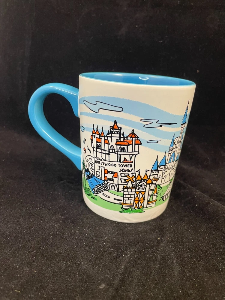 Pre-Owned WALT DISNEY WORLD Coffee Mug Skyline 4 Parks Epcot Hollywood Tower Magic Kingdom In wonderful pre owned condition. closet shelf #1 for inventory.